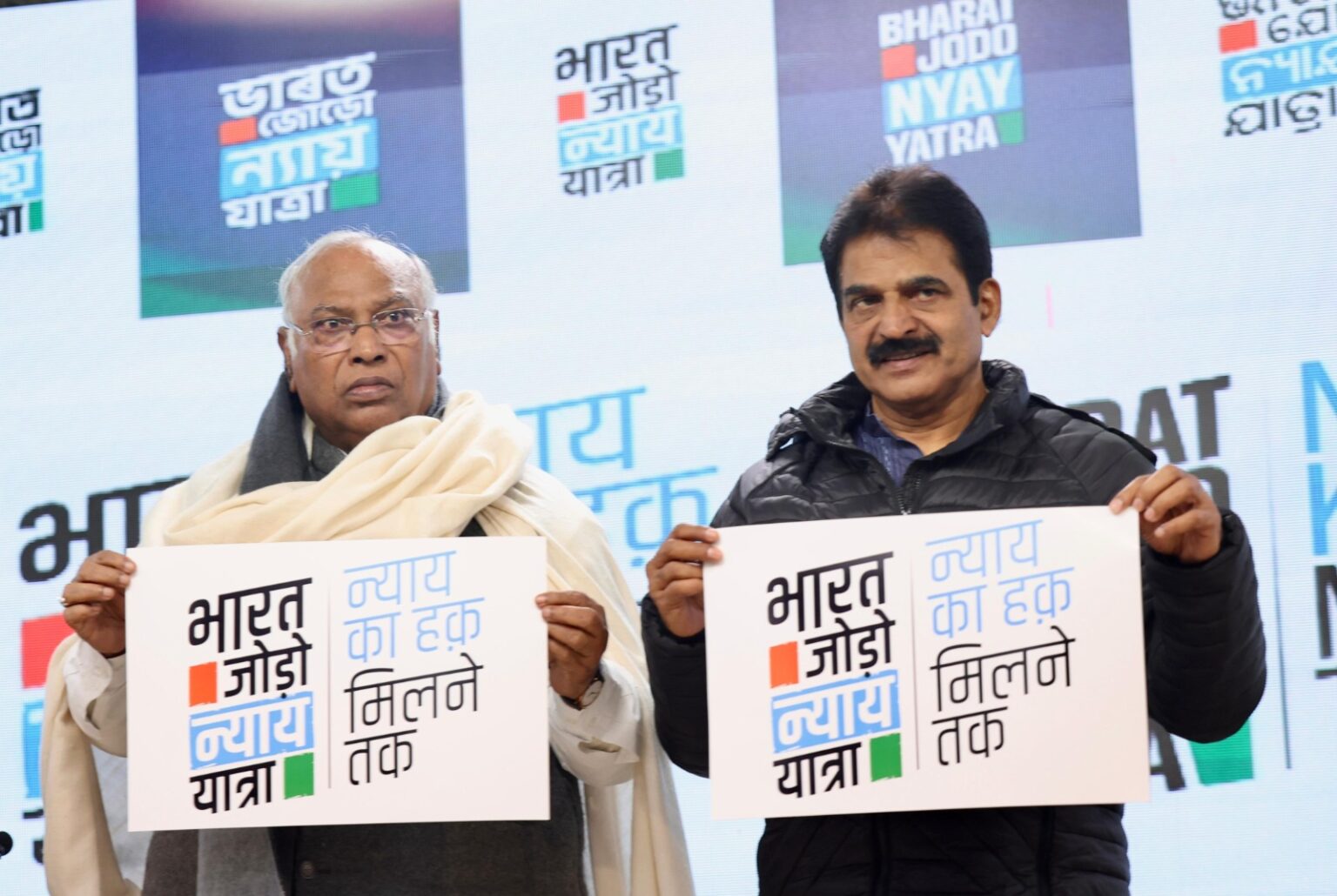 नई दिल्ली। कांग्रेस अध्यक्ष मल्लिकार्जुन खड़गे ने शनिवार को पार्टी मुख्यालय में ‘भारत जोड़ो न्याय यात्रा’ का लोगो लॉन्च किया। इस लोगो के दो हिस्से हैं। जिस पर लिखा है “भारत जोड़ो न्याय यात्रा, न्याय का हक मिलने तक”।