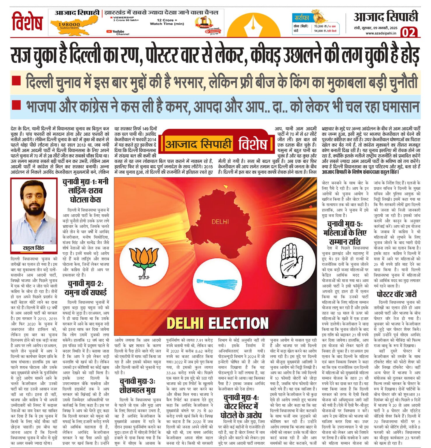 देश के दिल, यानी दिल्ली में विधानसभा चुनाव का बिगुल बज चुका है। पांच फरवरी को मतदान होगा और आठ फरवरी को नतीजे आयेंगे। लेकिन दिल्ली चुनाव के बारे में कुछ भी कहने से पहले थोड़ा पीछे लौटना होगा। वह साल 2013 था, जब नयी नवेली आम आदमी पार्टी ने दिल्ली विधानसभा के लिए अपने पहले चुनाव में 70 में से 28 सीटें जीत कर सबको चौंका दिया था। उस समय भाजपा सबसे बड़ी पार्टी बन कर उभरी, लेकिन आम आदमी पार्टी ने कांग्रेस से मिल कर सरकार बनायी। अन्ना आंदोलन से निकले अरविंद केजरीवाल मुख्यमंत्री बने, लेकिन वह सरकार सिर्फ 149 दिनों तक चल पायी थी। अरविंद केजरीवाल ने फरवरी 2014 में यह कहते हुए इस्तीफा दे दिया कि दिल्ली विधानसभा में संख्या बल की कमी की वजह से वह जन लोकपाल बिल पास कराने में नाकाम रहे हैं, इसलिए फिर से चुनाव बाद पूर्ण जनादेश के साथ लौटेंगे। 2015 में जब चुनाव हुआ, तो दिल्ली की राजनीति में इतिहास रचते हुए आप, यानी आम आदमी पार्टी ने 70 में से 67 सीटें जीत लीं। इस बात को एक दशक बीत चुके हैं। यमुना में बहुत पानी बह चुका है और वह कुछ और मैली हो गयी है। सत्ता भी बदल चुकी है। अब एक बार फिर केजरीवाल की आप समेत तमाम दल दिल्ली की जनता के बीच हैं। दिल्ली में इस बार का चुनाव काफी रोचक होने वाला है। जिस भ्रष्टाचार के मुद्दे पर अन्ना आंदोलन के बीच से आम आदमी पार्टी का जन्म हुआ, इसी मुद्दे पर भाजपा केजरीवाल को घेरने की पुरजोर कोशिश कर रही है। उधर केजरीवाल घोषणाओं का पिटारा खोल कर बैठ गये हैं, तो कांग्रेस मुकाबले का तीसरा मजबूत कोण बनाती दिख रही है। यह चुनाव इसलिए भी रोचक होने जा रहा है, क्योंकि इसके नतीजे राष्ट्रीय राजनीति को प्रभावित करेंगे और सबसे ज्यादा आम आदमी पार्टी के भविष्य को तय करेंगे। क्या है दिल्ली विधानसभा का पूरा परिदृश्य और मुद्दे, बता रहे हैं आजाद सिपाही के विशेष संवाददाता राहुल सिंह।