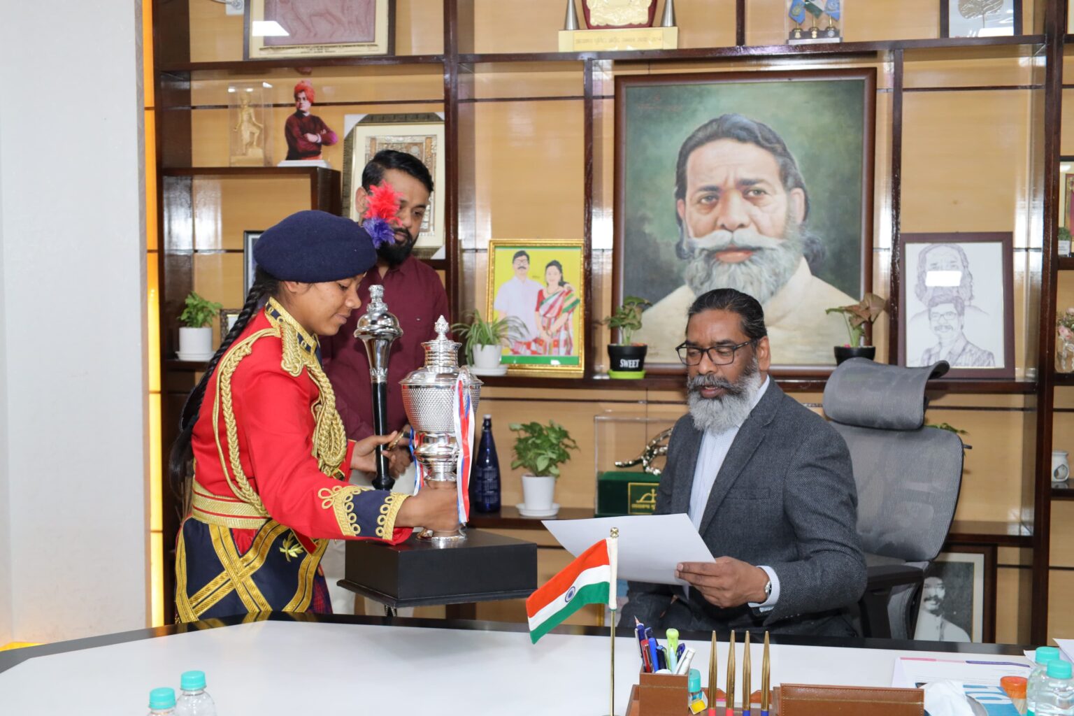 रांची। मुख्यमंत्री हेमन्त सोरेन से मंगलवार को नई दिल्ली में 24-25 जनवरी को आयोजित नेशनल स्कूल बैंड कंपटीशन-2025 में पूरे देश में प्रथम स्थान हासिल करने वाली कस्तूरबा गांधी आवासीय बालिका विद्यालय पटमदा की बैंड टीम में शामिल छात्राओं ने मुलाकात की। उन्होंने मुख्यमंत्री को राष्ट्रीय स्तर के इस बैंड कंंपटीशन के अनुभवों को साझा किया।