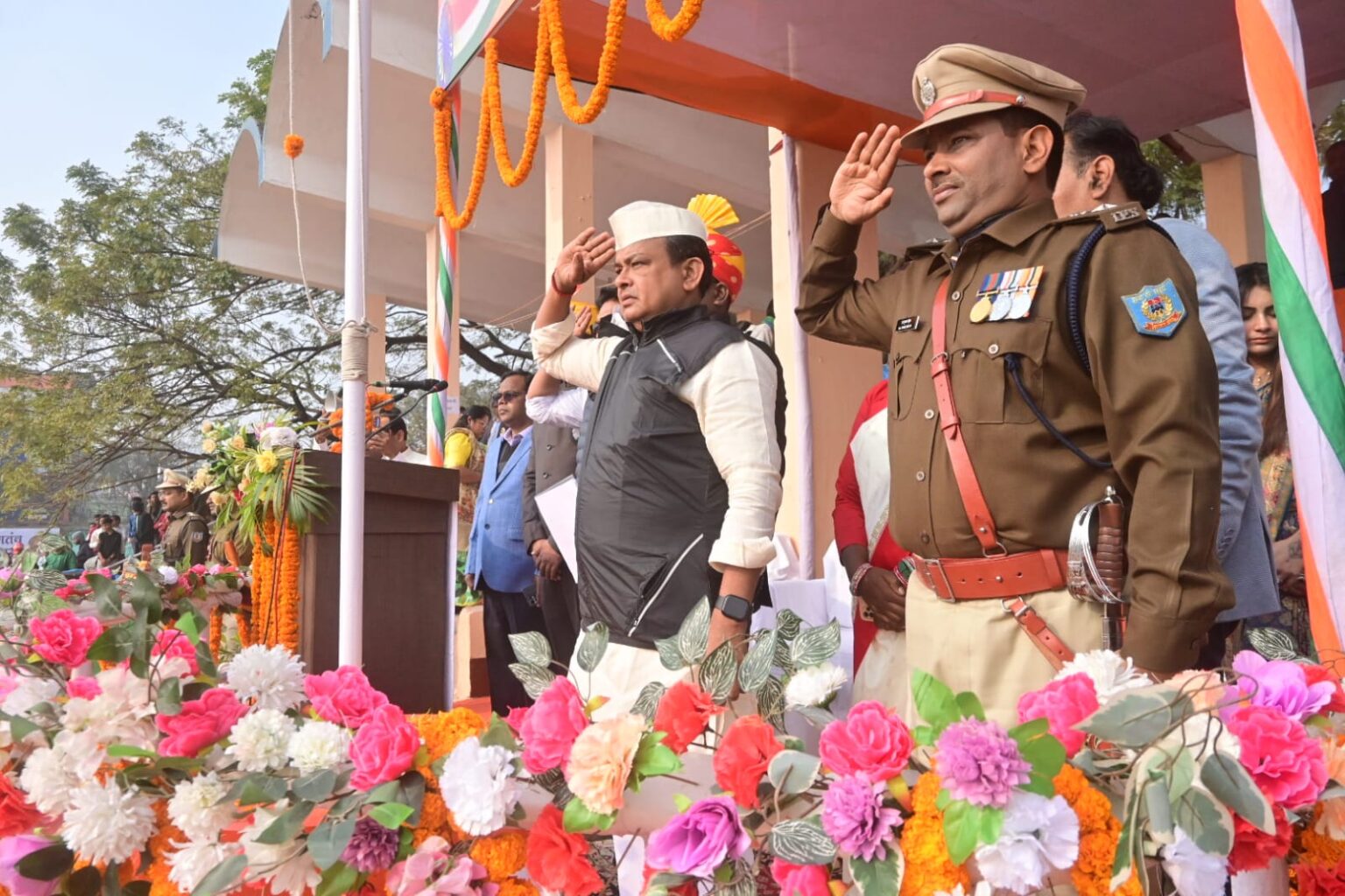 मंत्री ने अपने आवास से कार्यक्रमों की शुरुआत करते हुए इंदिरा चौक में झंडा फहराया। इसके बाद उन्होंने वीर कुंवर सिंह, नेताजी सुभाषचंद्र बोस तथा एसबीआई परिसर स्थित महात्मा गांधी, डॉ. भीमराव अंबेडकर, भगवान बिरसा मुंडा और सिद्धू-कान्हू मुर्मू की प्रतिमाओं पर माल्यार्पण कर श्रद्धांजलि अर्पित की।