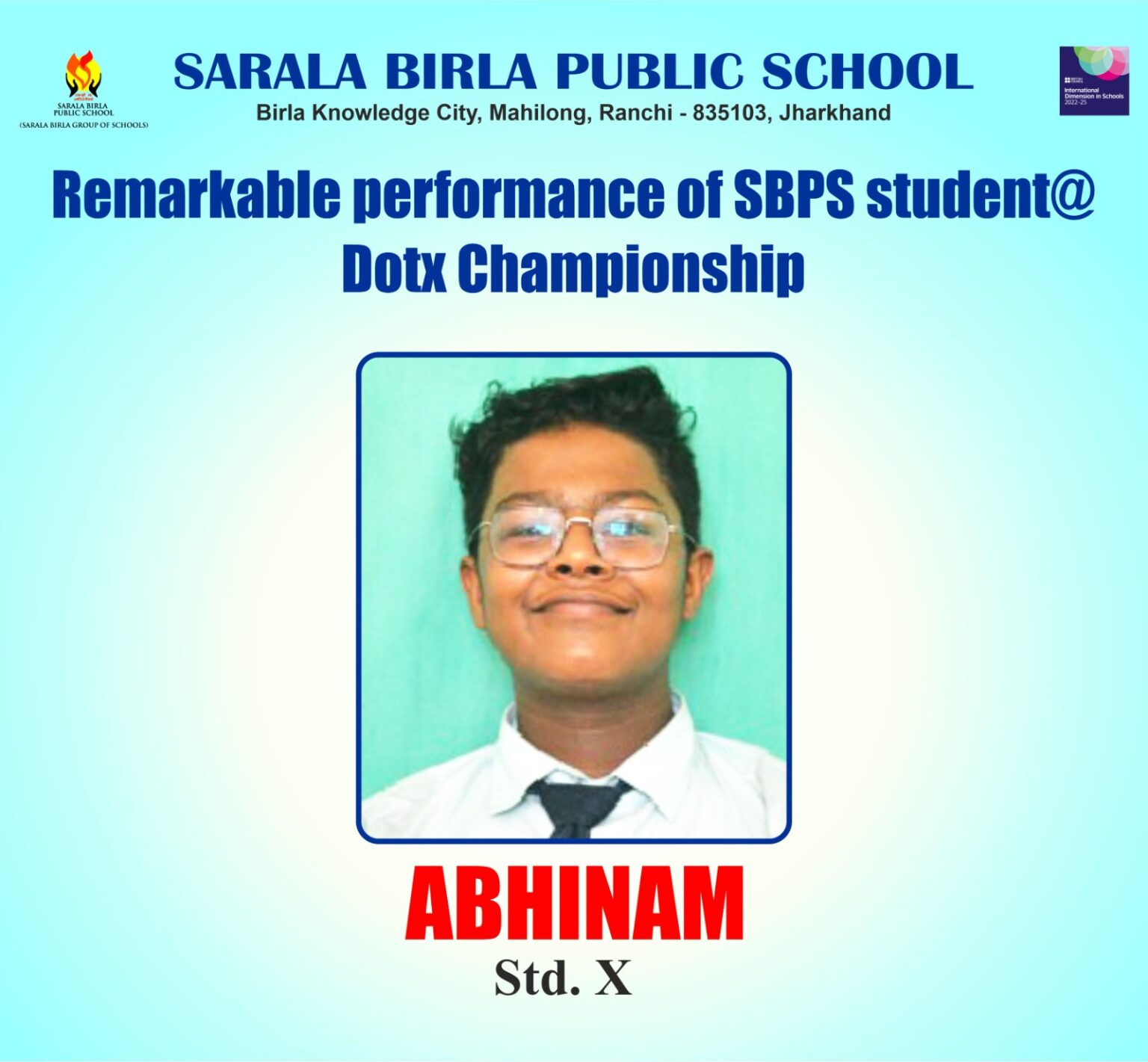 विद्यालय के कार्मिक एवं प्रशासनिक प्रमुख डॉ प्रदीप वर्मा ने छात्र को अनुकरणीय प्रदर्शन के लिए बधाई दी। प्राचार्या परमजीत कौर ने छात्र की उत्कृष्ट उपलब्धि की सराहना की। साथ ही दूसरे बच्चों को भी ऐसी गतिविधियों में भाग लेने के लिए प्रोत्साहित किया।