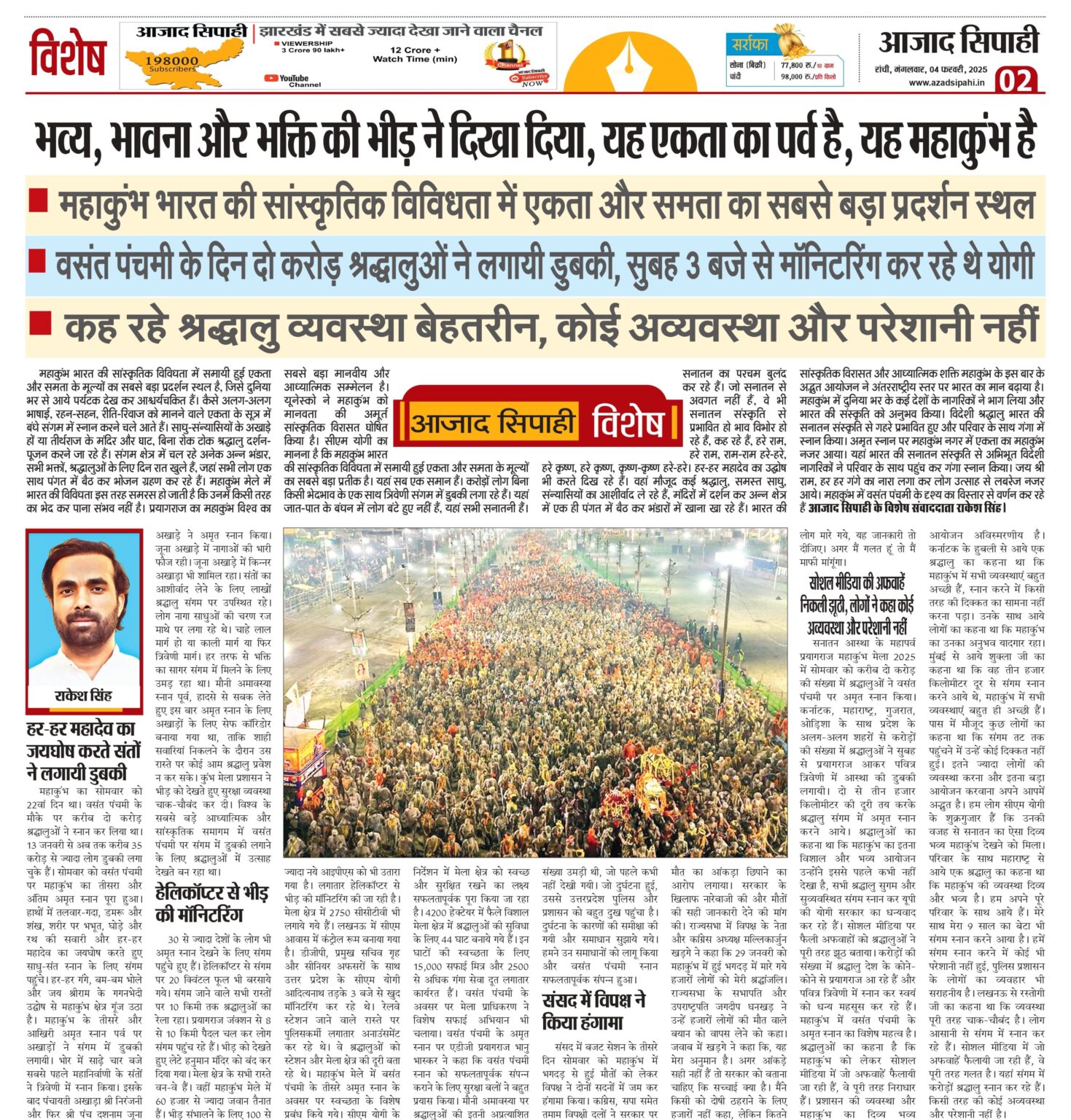 वसंत पंचमी के दिन दो करोड़ श्रद्धालुओं ने लगायी डुबकी, सुबह 3 बजे से मॉनिटरिंग कर रहे थे योगी
