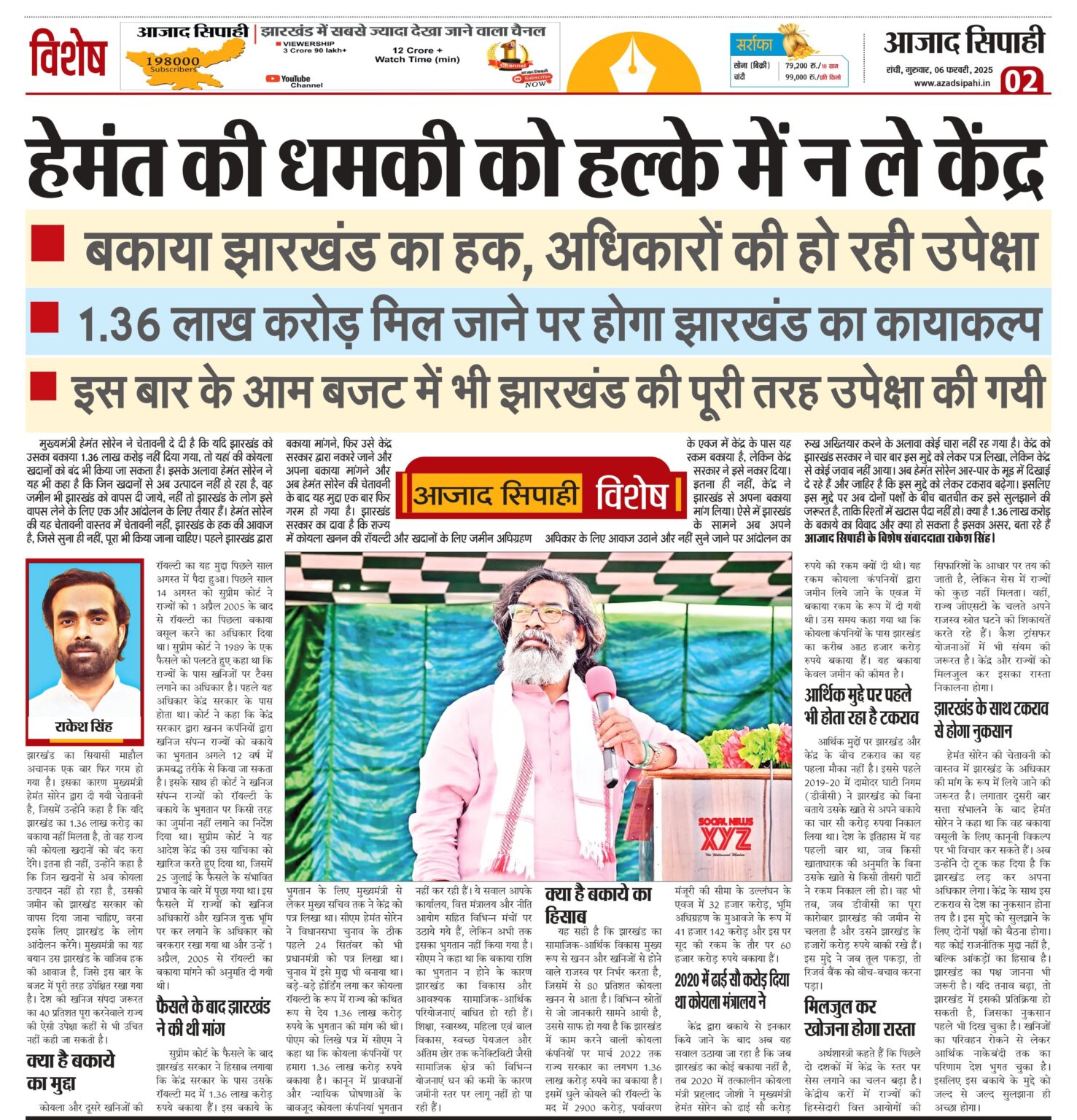 बकाया झारखंड का हक, अधिकारों की हो रही उपेक्षा