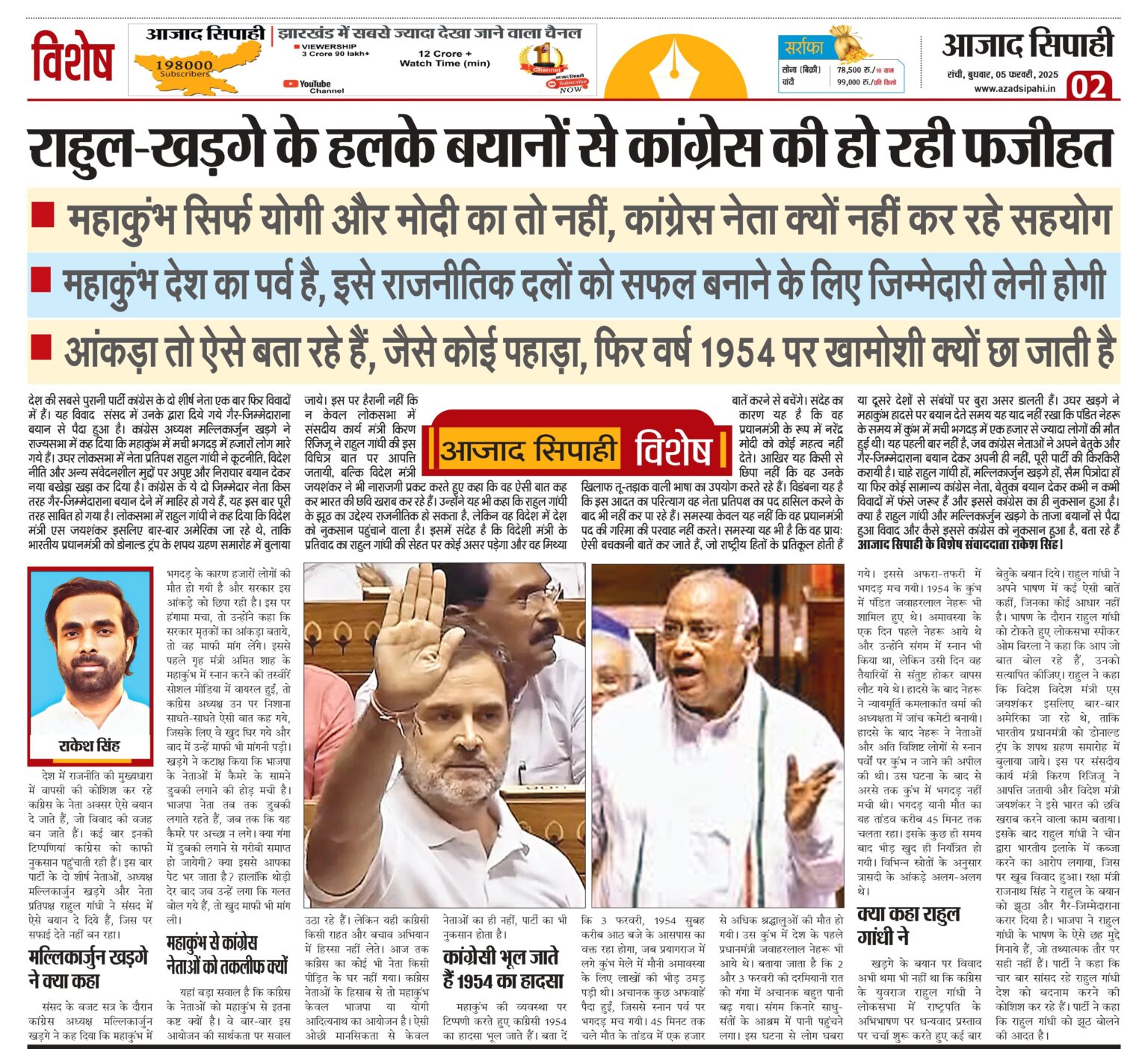 यहां बड़ा सवाल है कि कांग्रेस के नेताओं को महाकुंभ से इतना कष्ट क्यों है। वे बार-बार इस आयोजन की सार्थकता पर सवाल उठा रहे हैं। लेकिन यही कांग्रेसी किसी राहत और बचाव अभियान में हिस्सा नहीं लेते। आज तक कांग्रेस का कोई भी नेता किसी पीड़ित के घर नहीं गया। कांग्रेस नेताओं के हिसाब से तो महाकुंभ केवल भाजपा या योगी आदित्यनाथ का आयोजन है। ऐसी ओछी मानसिकता से केवल नेताओं का ही नहीं, पार्टी का भी नुकसान होता है।