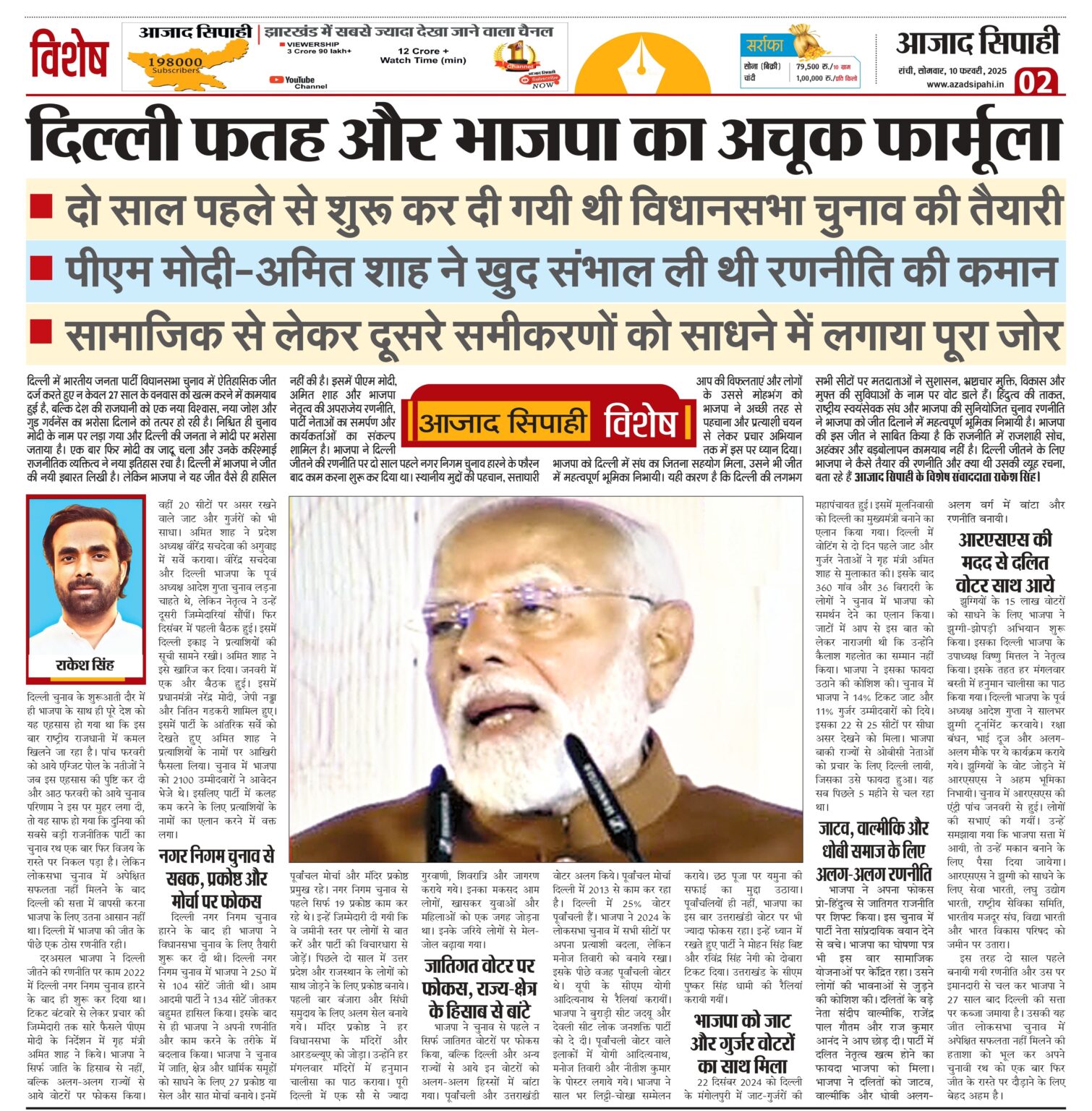 दिल्ली में भारतीय जनता पार्टी विधानसभा चुनाव में ऐतिहासिक जीत दर्ज करते हुए न केवल 27 साल के वनवास को खत्म करने में कामयाब हुई है, बल्कि देश की राजधानी को एक नया विश्वास, नया जोश और गुड गर्वनेंस का भरोसा दिलाने को तत्पर हो रही है। निश्चित ही चुनाव मोदी के नाम पर लड़ा गया और दिल्ली की जनता ने मोदी पर भरोसा जताया है। एक बार फिर मोदी का जादू चला और उनके करिश्माई राजनीतिक व्यक्तित्व ने नया इतिहास रचा है। दिल्ली में भाजपा ने जीत की नयी इबारत लिखी है। लेकिन भाजपा ने यह जीत वैसे ही हासिल नहीं की है। इसमें पीएम मोदी, अमित शाह और भाजपा नेतृत्व की अपराजेय रणनीति, पार्टी नेताओं का समर्पण और कार्यकर्ताओं का संकल्प शामिल है। भाजपा ने दिल्ली जीतने की रणनीति पर दो साल पहले नगर निगम चुनाव हारने के फौरन बाद काम करना शुरू कर दिया था। स्थानीय मुद्दों की पहचान, सत्ताधारी आप की विफलताएं और लोगों के उससे मोहभंग को भाजपा ने अच्छी तरह से पहचाना और प्रत्याशी चयन से लेकर प्रचार अभियान तक में इस पर ध्यान दिया। भाजपा को दिल्ली में संघ का जितना सहयोग मिला, उसने भी जीत में महत्वपूर्ण भूमिका निभायी। यही कारण है कि दिल्ली की लगभग सभी सीटों पर मतदाताओं ने सुशासन, भ्रष्टाचार मुक्ति, विकास और मुफ्त की सुविधाओं के नाम पर वोट डाले हैं। हिंदुत्व की ताकत, राष्ट्रीय स्वयंसेवक संघ और भाजपा की सुनियोजित चुनाव रणनीति ने भाजपा को जीत दिलाने में महत्वपूर्ण भूमिका निभायी है। भाजपा की इस जीत ने साबित किया है कि राजनीति में राजशाही सोच, अहंकार और बड़बोलापन कामयाब नहीं है। दिल्ली जीतने के लिए भाजपा ने कैसे तैयार की रणनीति और क्या थी उसकी व्यूह रचना, बता रहे हैं आजाद सिपाही के विशेष संवाददाता राकेश सिंह।