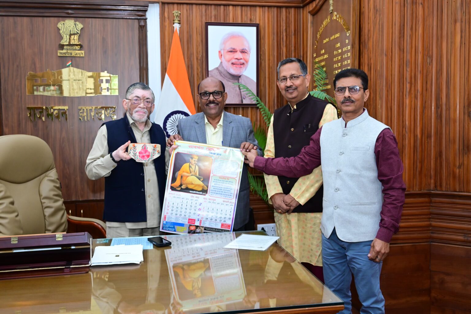 रांची। मचान उत्कर्ष फाउंडेशन के एक शिष्टमंडल ने गुरुवार को राजभवन में राज्यपाल संतोष कुमार गंगवार से भेंट की। शिष्टमंडल ने राज्यपाल को मैथिली भाषा से जुड़ी विभिन्न मांगों से अवगत कराया। इस दौरान प्रतिनिधियों ने राज्यपाल को मिथिला पंचांग एवं मधुबनी पेंटिंग भी भेंट की।