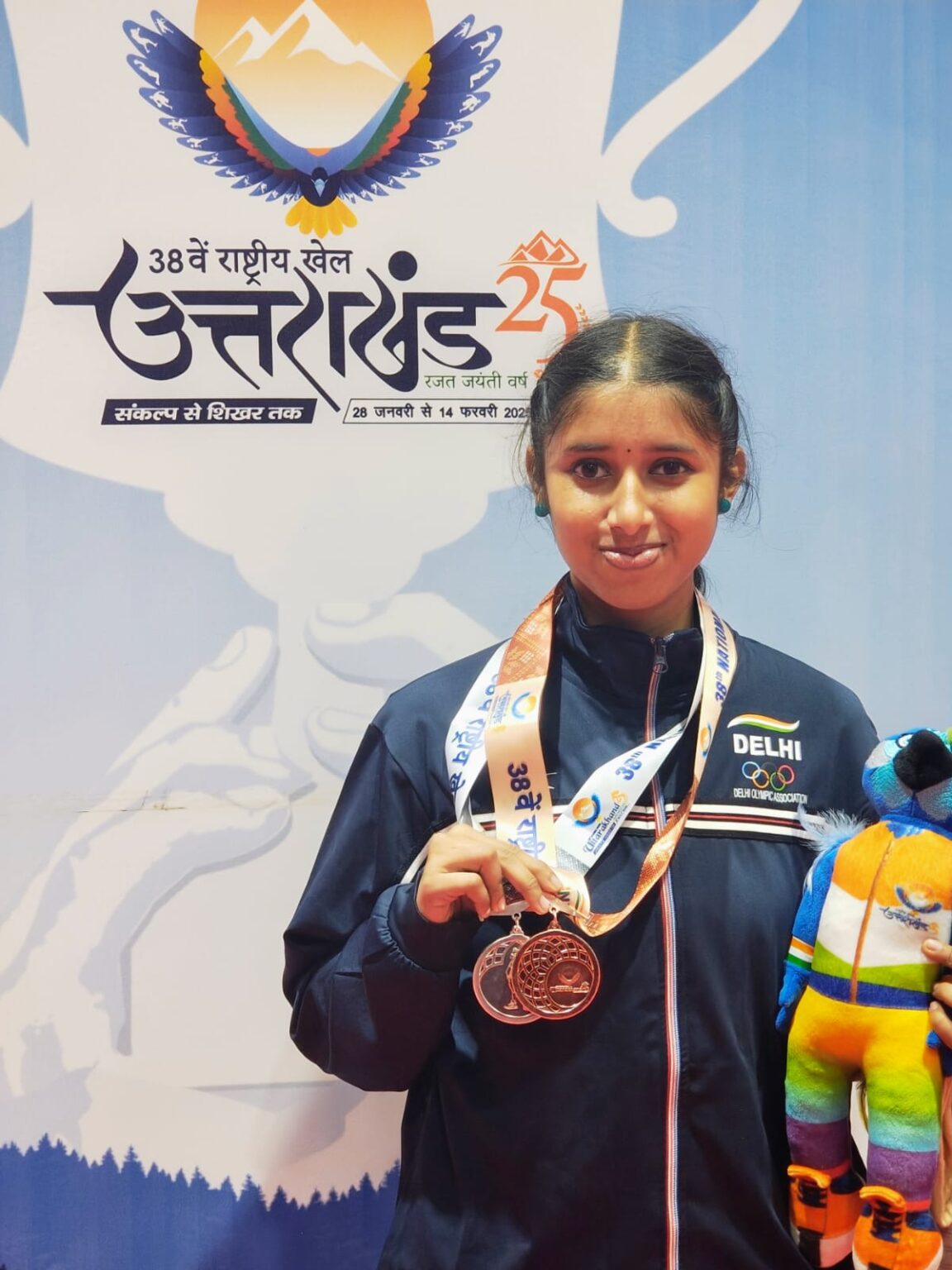 नई दिल्ली। गुरु गोबिंद सिंह इंद्रप्रस्थ यूनिवर्सिटी से संबद्ध इंस्टीट्यूट एनडीआईएम की छात्रा जीयूओ विस्मया बिनु ने देहरादून में चल रहे 38वें राष्ट्रीय खेलों में कलारीपयट्टू खेल स्पर्धा में अपनी असाधारण प्रतिभा का प्रदर्शन किया है। उन्होंने इस प्रतियोगिता में तलवार और ढाल श्रेणी में रजत पदक और उर्मी और ढाल श्रेणी में कांस्य पदक हासिल किया है। इस प्रतियोगिता में उन्होंने दिल्ली का प्रतिनिधित्व किया। 38 वें राष्ट्रीय खेल स्पर्धा उत्तराखंड के देहरादून में 28 जनवरी से लेकर 14 फरवरी तक आयोजित किए जा रहे हैं।
