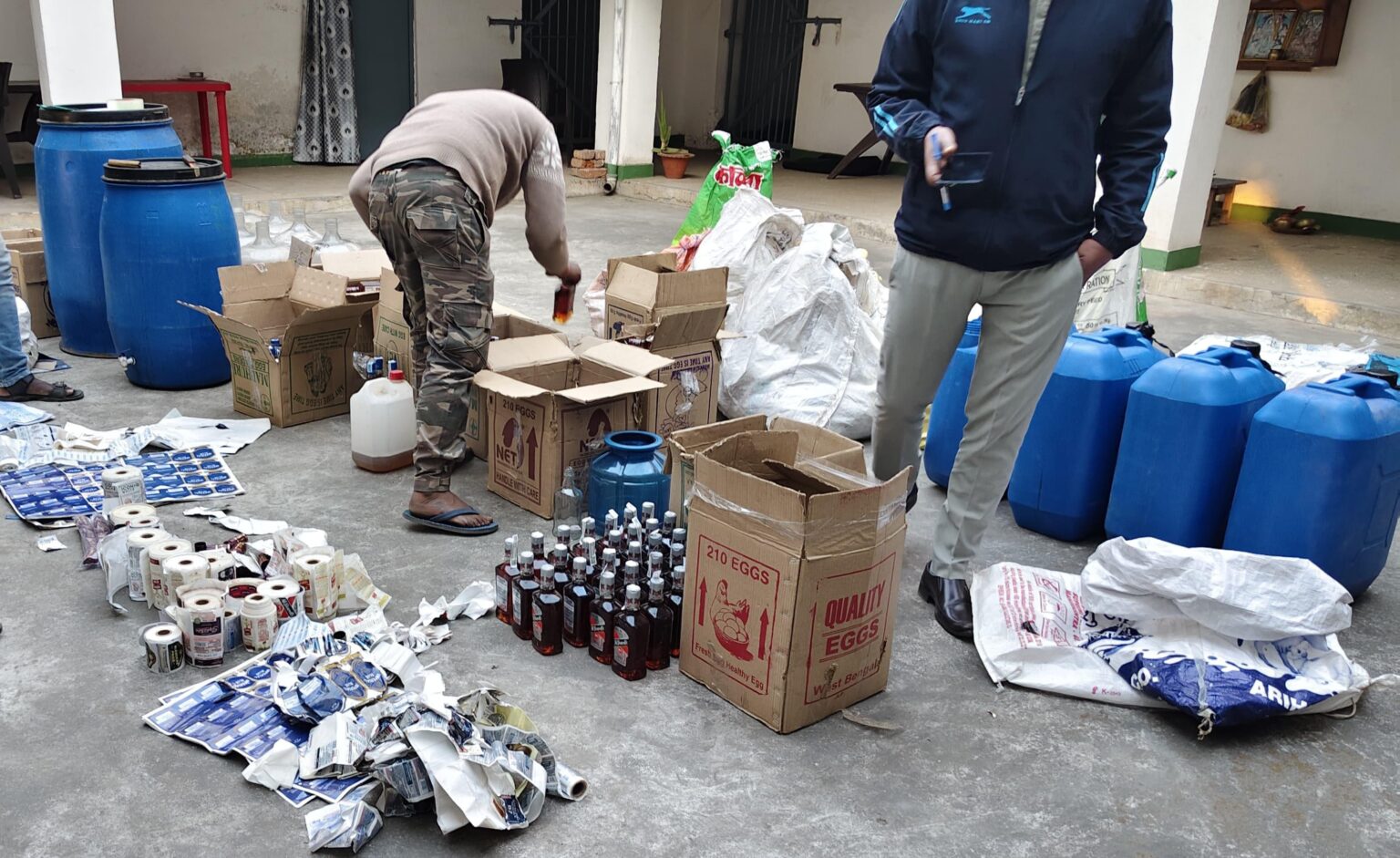 बुधवार दोपहर करीब दो बजे टीम ने मोहगांव गांव के भुइयां टोला स्थित मकान पर छापा मारा। छापेमारी के दौरान एक पुराने मकान में चल रही मिनी शराब फैक्ट्री का पर्दाफाश हुआ। पुलिस ने मौके से भारी मात्रा में अंग्रेजी शराब और उसे बनाने में इस्तेमाल होने वाले उपकरण बरामद किए। मौके से दो लोगों को हिरासत में लिया गया है, जिनसे पूछताछ की जा रही है।