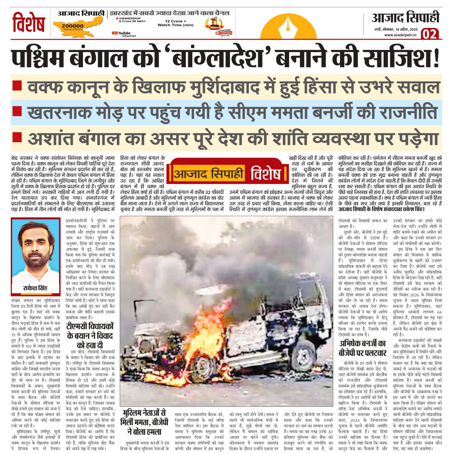 कलकत्ता हाइकोर्ट की सख्ती और केंद्रीय बलों की तैनाती के बाद मुर्शिदाबाद में स्थिति धीरे-धीरे नियंत्रण में आ रही है। लेकिन सवाल यह है कि क्या यह हिंसा वाकई से अचानक से भड़की थी या इसके पीछे कोई गहरी सियासी साजिश है। ममता बनर्जी की मुस्लिम नेताओं के साथ बैठक और बीजेपी के आक्रामक रुख ने इस आग में और घी डालने का काम किया है। पश्चिम बंगाल को बांग्लादेश बनाने का आरोप लगाने वाली बीजेपी और इसे सांप्रदायिक साजिश करार देने वाली टीएमसी के बीच यह जंग अब सड़कों से सोशल मीडिया और विधानसभा तक पहुंच चुकी है। ऐसे में सच्चाई क्या है और इसका जवाब कौन देगा, यह वक्त ही बतायेगा।