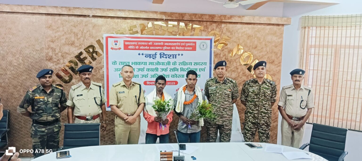 लातेहार। भाकपा माओवादी नक्सली संगठन के दो सक्रिय नक्सली अमरजीत बृजिया और मिथिलेश कोरबा ने मंगलवार को लातेहार पुलिस के समक्ष आत्मसमर्पण कर दिया। दोनों नक्सली छत्तीसगढ़ के बलरामपुर जिले के रहने वाले हैं। दोनों लातेहार जिले के बूढ़ा पहाड़ सहित अन्य इलाके में सक्रिय थे।