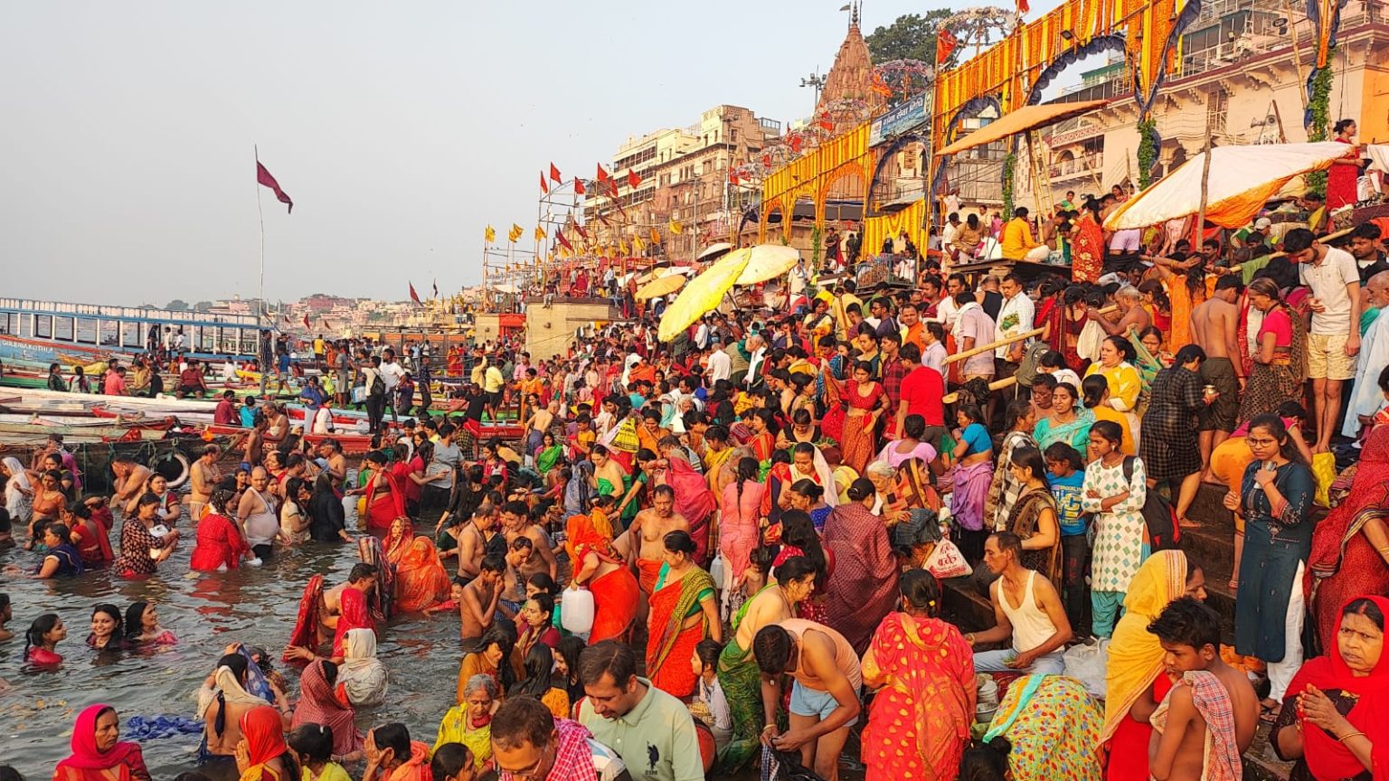 -प्राचीन दशाश्वमेध घाट, राजेन्द्र प्रसाद घाट, शीतलाघाट, अहिल्याबाई घाट, पंचगंगा घाट पर श्रद्धालुओं की भीड़