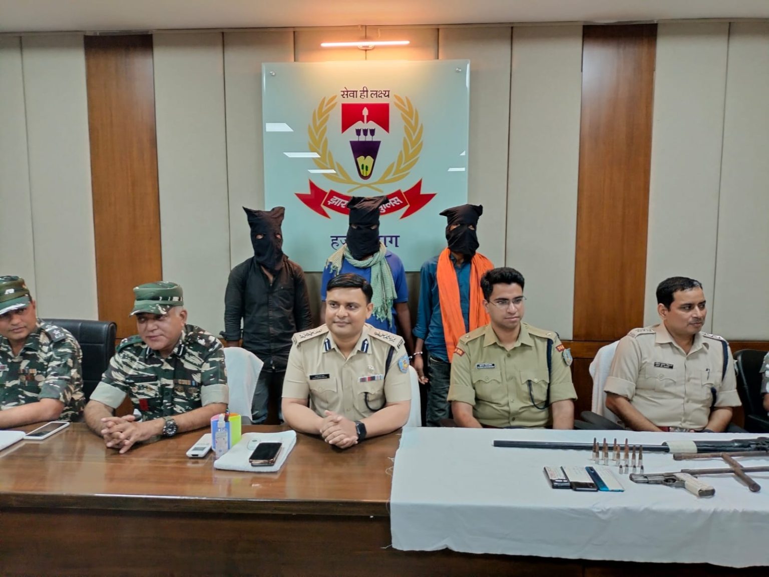 बहादुर गंझू उर्फ नरेश भोक्ता के पास से एक 9 एमएम का लोडेड देशी पिस्टल, मैगजीन सहित 4 चक्र जिन्दा गोली तथा उनकी निशानदेही पर एक देशी भराठी बंदूक एवं एक मोबाईल बरामद किया गया। मुकेश तुरी के पास से एक देशी पीजी कार्बाईन एवं 5 जिन्दा गोली एक मोबाईल एवं एक अपाची टीवीएस कम्पनी का मोटरसाईकिल बरामद किया है। दिनेश लोहरा के पास से एक देशी कार्बाईन 5 जिंदा गोली एवं एक मोबाईल को बरामद किया।