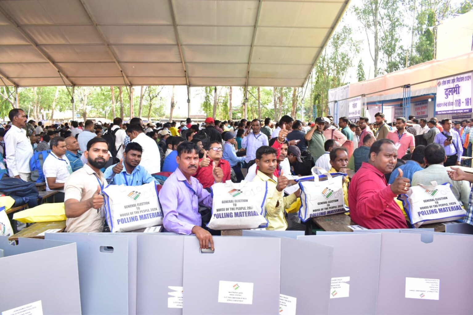 रामगढ़। रामगढ़ में लोकसभा चुनाव के लिए 20 मई को मतदान होना है। जिला प्रशासन ने इसकी तैयारी पूरी कर ली है। रविवार की सुबह से ही रामगढ़ कॉलेज में बनाए गए डिस्पैच सेंटर से ईवीएम और पोलिंग पार्टी को मतदान केंद्र के लिए रवाना किया जा रहा है। डीसी चंदन कुमार और एसपी डॉ बिमल कुमार ने डिस्पैच सेंटर का जायजा लिया। दोनों अधिकारियों ने मतदान कार्य में लगे कर्मियों और सुरक्षा में लगे पुलिस जवानों का मनोबल बढ़ाया है। सफलता पूर्वक मतदान संपन्न कराने के लिए मतदान केन्द्रों पर 22 बड़कागांव के लिए 2156 एवं 23 रामगढ़ के लिए 1892 मतदान पदाधिकारी लगाए गए हैं।