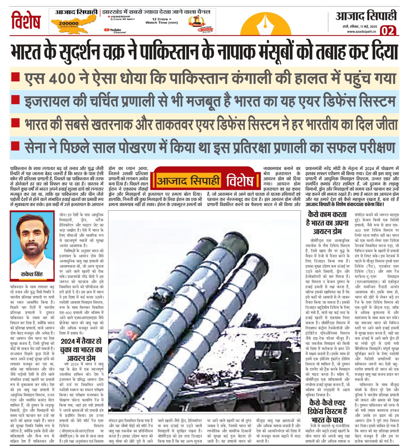 पाकिस्तान के साथ लगातार बढ़ रहे तनाव और युद्ध जैसी स्थिति में यह जानना बेहद जरूरी है कि भारत के पास ऐसी कौन सी प्रतिरक्षा प्रणाली है, जिससे वह पाकिस्तान की तरफ से होनेवाले हर वार को विफल कर पा रहा है। वास्तव में पिछले कुछ वर्षों से भारत अपने हवाई सुरक्षा ढांचे को लगातार मजबूत कर रहा था, ताकि वह पाकिस्तान और चीन जैसे पड़ोसी देशों से होने वाले संभावित हवाई खतरों का प्रभावी रूप से मुकाबला कर सके। इस कड़ी में उसे इजरायल के आयरन डोम का ध्यान आया, जिसने उसकी प्रतिरक्षा प्रणाली को लगभग अभेद्य बना दिया है। पिछले साल ईरान ने एकसाथ सैकड़ों ड्रोन और मिसाइलों से इजरायल पर हमला बोल दिया। हालांकि, गिनती की कुछ मिसाइलों के सिवा ईरान का एक भी हमला कामयाब नहीं हो सका। ईरान के एकमुश्त हमलों को नाकामयाब बनाने का श्रेय इजरायल के आयरन डोम को दिया गया। आयरन डोम इजरायल का वह कवच है, जो आसमान से आने वाले घातक से घातक हथियारों को पहचान कर नेस्तनाबूद कर देता है। इस आयरन डोम जैसी प्रणाली विकसित करने का फैसला भारत ने भी किया और प्रधानमंत्री नरेंद्र मोदी के नेतृत्व में 2024 में पोखरण में इसका सफल परीक्षण भी किया गया। देश की इस वायु रक्षा प्रणाली में आधुनिक मिसाइल सिस्टम, उन्नत रडार और समर्पित कमांड सेंटर शामिल हैं, जो दुश्मन के लड़ाकू विमानों, ड्रोन और मिसाइलों को समय रहते पहचान कर उन्हें नष्ट करने की क्षमता रखते हैं। क्या है भारत का आयरन डोम और यह हमारे देश को कैसे महफूज रखता है, बता रहे हैं आजाद सिपाही के विशेष संवाददाता राकेश सिंह।