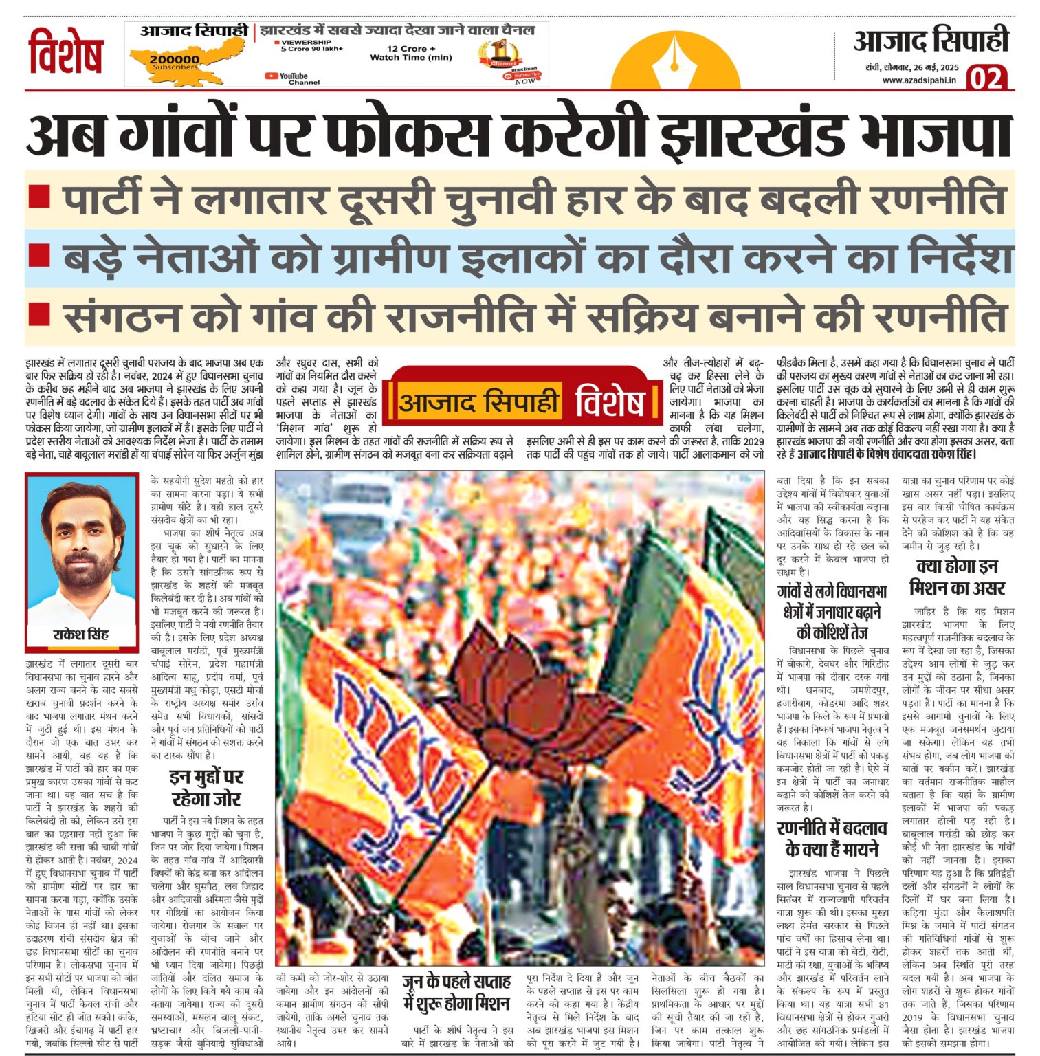 झारखंड में लगातार दूसरी चुनावी पराजय के बाद भाजपा अब एक बार फिर सक्रिय हो रही है। नवंबर, 2024 में हुए विधानसभा चुनाव के करीब छह महीने बाद अब भाजपा ने झारखंड के लिए अपनी रणनीति में बड़े बदलाव के संकेत दिये हैं। इसके तहत पार्टी अब गांवों पर विशेष ध्यान देगी। गांवों के साथ उन विधानसभा सीटों पर भी फोकस किया जायेगा, जो ग्रामीण इलाकों में हैं। इसके लिए पार्टी ने प्रदेश स्तरीय नेताओं को आवश्यक निर्देश भेजा है। पार्टी के तमाम बड़े नेता, चाहे बाबूलाल मरांडी हों या चंपाई सोरेन या फिर अर्जुन मुंडा और रघुवर दास, सभी को गांवों का नियमित दौरा करने को कहा गया है। जून के पहले सप्ताह से झारखंड भाजपा के नेताओं का ‘मिशन गांव’ शुरू हो जायेगा। इस मिशन के तहत गांवों की राजनीति में सक्रिय रूप से शामिल होने, ग्रामीण संगठन को मजबूत बना कर सक्रियता बढ़ाने और तीज-त्योहारों में बढ़-चढ़ कर हिस्सा लेने के लिए पार्टी नेताओं को भेजा जायेगा। भाजपा का मानना है कि यह मिशन काफी लंबा चलेगा, इसलिए अभी से ही इस पर काम करने की जरूरत है, ताकि 2029 तक पार्टी की पहुंच गांवों तक हो जाये। पार्टी आलाकमान को जो फीडबैक मिला है, उसमें कहा गया है कि विधानसभा चुनाव में पार्टी की पराजय का मुख्य कारण गांवों से नेताओं का कट जाना भी रहा। इसलिए पार्टी उस चूक को सुधारने के लिए अभी से ही काम शुरू करना चाहती है। भाजपा के कार्यकर्ताओं का मानना है कि गांवों की किलेबंदी से पार्टी को निश्चित रूप से लाभ होगा, क्योंकि झारखंड के ग्रामीणों के सामने अब तक कोई विकल्प नहीं रखा गया है। क्या है झारखंड भाजपा की नयी रणनीति और क्या होगा इसका असर, बता रहे हैं आजाद सिपाही के विशेष संवाददाता राकेश सिंह।