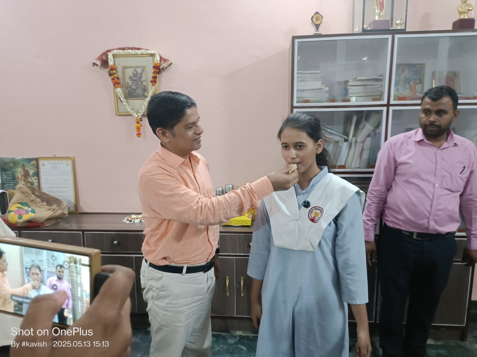 बड़ी बेटी तेजस्वी सिंह इंटर की तथा पुत्र सिद्धांत सिंह हाइस्कूल में था। तेजस्वी सिंह के परिणाम की खबर सुनते ही परिवार में खुशी व्याप्त हो गयी। सभी ने तेजस्वी को मिठाई खिलाकर बधाई व शुभकामनाएं दिया। स्कूल की तरफ से तेजस्वी को प्रधानचार्य डॉ. ब्रूनो डी नाजरेथ,उप प्रधानचार्य कृष्णा यादव आदि ने मिठाई खिलाकर शुभकामनाएं दिया। प्रबन्धक शिवेंद्र प्रताप सिंह ने तेजस्वी सिंह के इस सफलता पर बधाई देते हुए उज्ज्वल भविष्य की कामना किया।