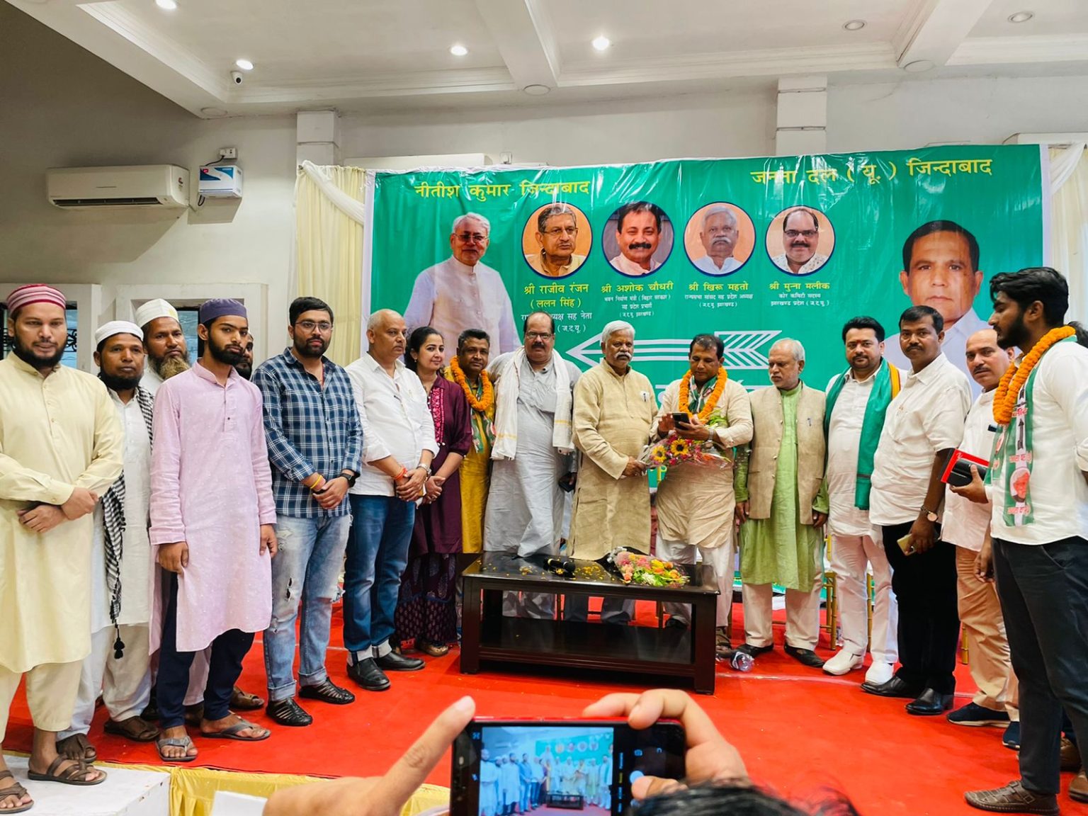 रांची। जनता दल यूनाईटेड (जदयू) का मिलन समारोह रविवार को क्वींस पैलेस बैंक्वेट हाल, सोलंकी चौक हटिया में आयोजित किया गया। मौके पर झारखंड विकास मोर्चा के नेता और हटिया विधानसभा के पूर्व उम्मीदार अख़्तर हुसैन खान ने अपने सैकड़ों समर्थकों के साथ जदयू में शामिल हुए। समारोह में बतौर मुख्य अतिथि प्रदेश अध्यक्ष सह राज्यसभा सांसद खीरू महतो ने उन्हें पार्टी की सदस्यता ग्रहण कराई। उनके साथ मुख्य रूप से अधिवक्ता मो. फ़ैज़, ब्रजेश पासवान, वसीम खान, शाहीद वारसी, हाफ़िज़ इरशाद, अज़ीम खान, हफ़िज़ूल इस्लाम एवं अन्य शामिल थे।
