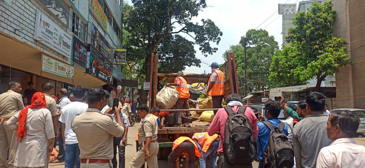 रांची। लालपुर स्थित डिस्टलरी पुल से कोकर के बीच सब्जी विक्रेताओं के खिलाफ मंगलवार को अतिक्रमण अभियान चलाया जा रहा है। इसके विरोध में कुछ देर के लिए बड़ी संख्या में सब्जी विक्रेताओं ने सड़क पर बैठ कर कोकर- लालपुर मार्ग को जाम कर दिए । लेकिन फिर निगम के अधिकारियों और पुलिस ने सड़क जाम तुरंत हटवाया।
