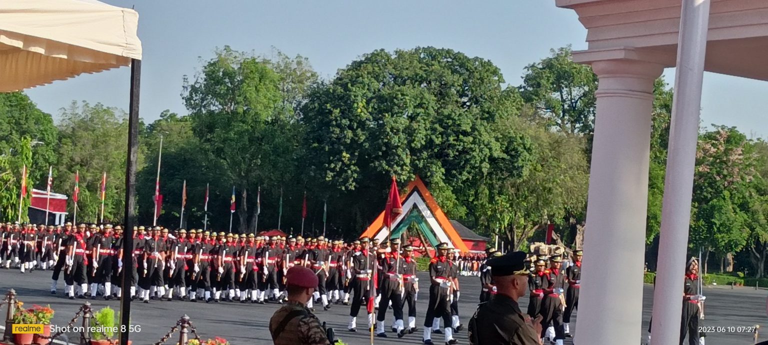 ड्रिल स्क्वायर पर सुबह सात बजकर 25 मिनट पर मार्कर्स काल के साथ परेड शुरू हुई। थल सेना प्रमुख मनोज पांडे शौर्य मार्ग से परेड स्थल पर 7 बजकर 15 मिनट पर पहुंंचे। निरीक्षण अधिकारी ने कैडेट्स को ओवरआल बेस्ट परफॉर्मेंस और अन्य सम्मान से नवाजा। इस मौके पर सेना के तीन हेलीकॉप्टरों से पुष्प वर्षा की गई। वरिष्ठ सैन्य अधिकारी, देश-विदेश के अतिथि और कैडेट्स के परिजन इस भव्य आयोजन के साक्षी बने।