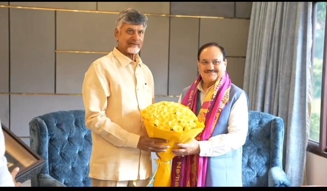 नई दिल्ली।आंध्र प्रदेश के मुख्यमंत्री चंद्र बाबू नायडू ने शुक्रवार को भाजपा के राष्ट्रीय अध्यक्ष और केंद्रीय मंत्री जेपी नड्डा से मुलाकात की। मुलाकात के बाद जेपी नड्डा ने ट्वीट करके कहा कि आज नई दिल्ली में आंध्र प्रदेश के मुख्यमंत्री चंद्रबाबू नायडू और टीडीपी सांसदों के साथ बैठक की।