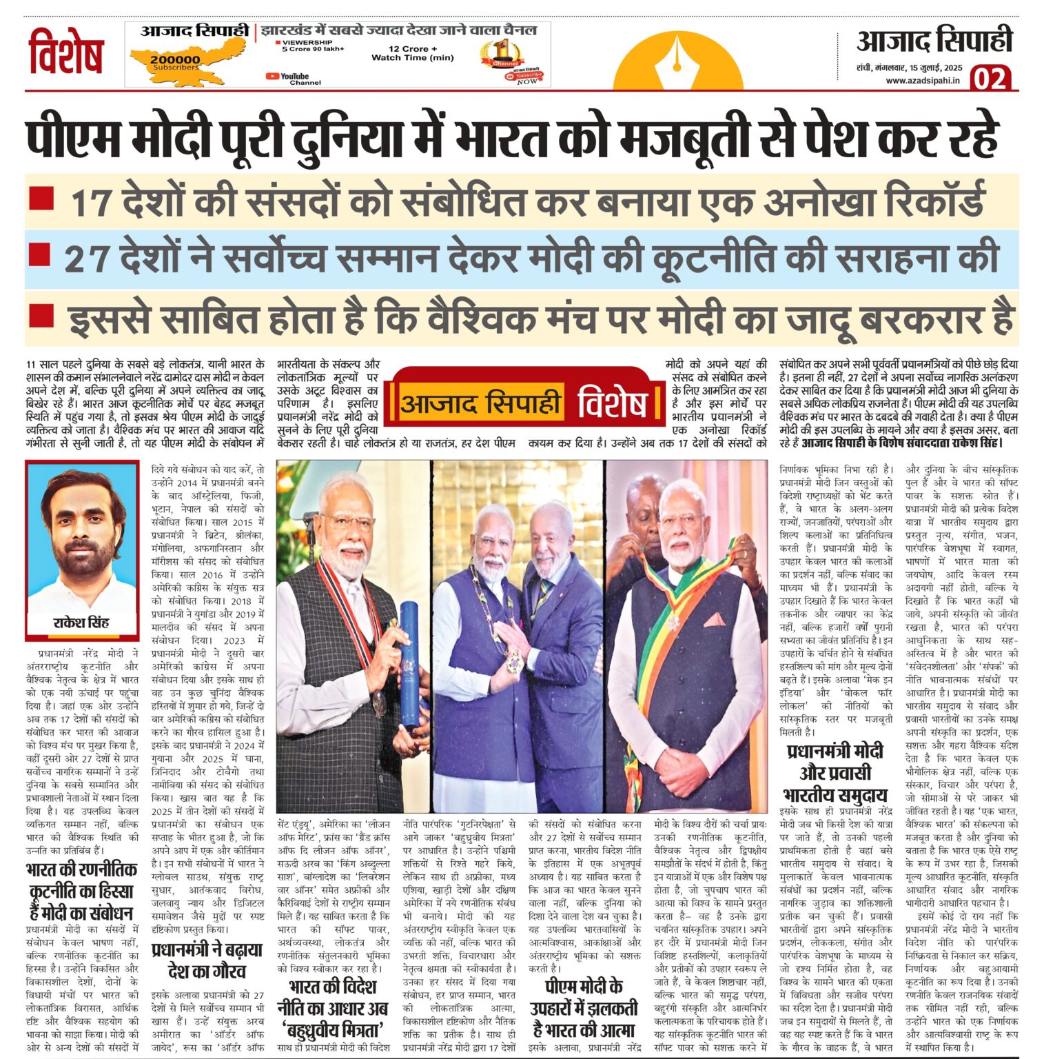 11 साल पहले दुनिया के सबसे बड़े लोकतंत्र, यानी भारत के शासन की कमान संभालनेवाले नरेंद्र दामोदर दास मोदी न केवल अपने देश में, बल्कि पूरी दुनिया में अपने व्यक्तित्व का जादू बिखेर रहे हैं। भारत आज कूटनीतिक मोर्चे पर बेहद मजबूत स्थिति में पहुंच गया है, तो इसका श्रेय पीएम मोदी के जादुई व्यक्तित्व को जाता है। वैश्विक मंच पर भारत की आवाज यदि गंभीरता से सुनी जाती है, तो यह पीएम मोदी के संबोधन में भारतीयता के संकल्प और लोकतांत्रिक मूल्यों पर उसके अटूट विश्वास का परिणाम है। इसलिए प्रधानमंत्री नरेंद्र मोदी को सुनने के लिए पूरी दुनिया बेकरार रहती है। चाहे लोकतंत्र हो या राजतंत्र, हर देश पीएम मोदी को अपने यहां की संसद को संबोधित करने के लिए आमंत्रित कर रहा है और इस मोर्चे पर भारतीय प्रधानमंत्री ने एक अनोखा रिकॉर्ड कायम कर दिया है। उन्होंने अब तक 17 देशों की संसदों को संबोधित कर अपने सभी पूर्ववर्ती प्रधानमंत्रियों को पीछे छोड़ दिया है। इतना ही नहीं, 27 देशों ने अपना सर्वोच्च नागरिक अलंकरण देकर साबित कर दिया है कि प्रधानमंत्री मोदी आज भी दुनिया के सबसे अधिक लोकप्रिय राजनेता हैं। पीएम मोदी की यह उपलब्धि वैश्विक मंच पर भारत के दबदबे की गवाही देता है। क्या है पीएम मोदी की इस उपलब्धि के मायने और क्या है इसका असर, बता रहे हैं आजाद सिपाही के विशेष संवाददाता राकेश सिंह।