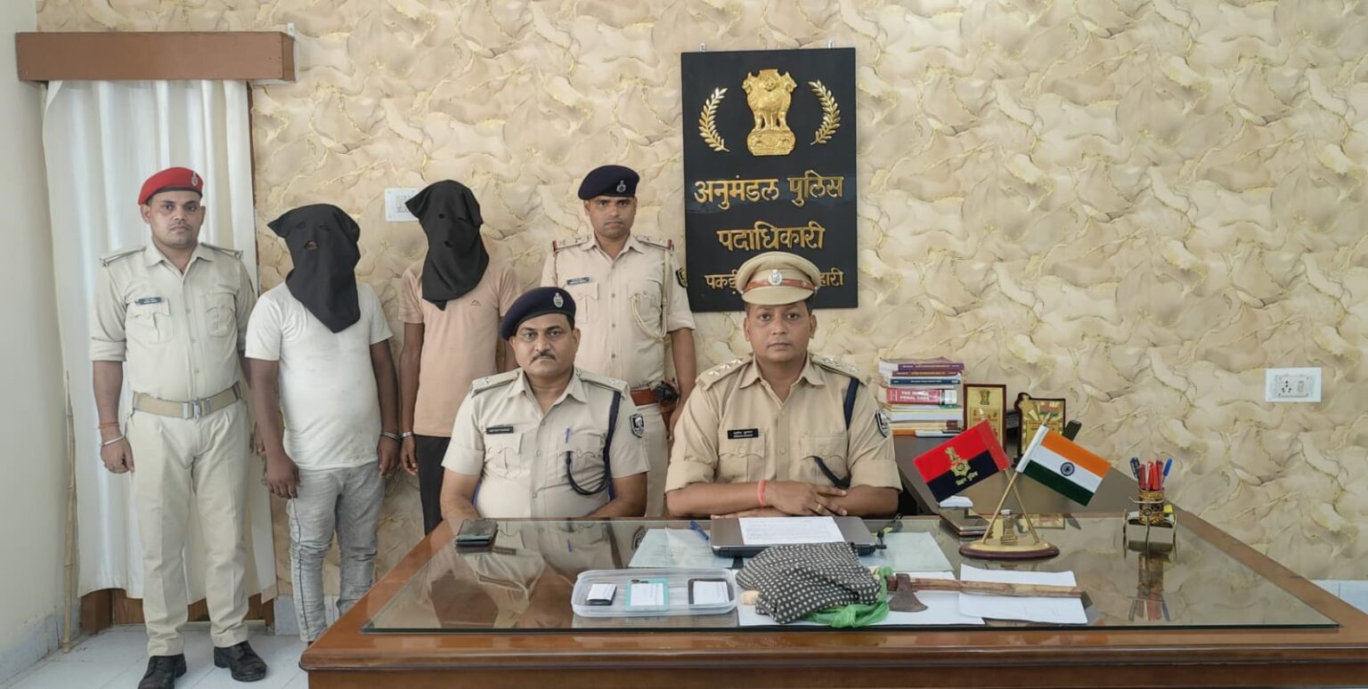पकड़ीदयाल डीएसपी सुबोध कुमार ने रविवार को बताया कि ननिहाल में रह रही युवती की कुल्हाड़ी से गर्दन काट कर निर्मम हत्या करने के मामले में पुलिस ने तकनीकी अनुसंधान व चप्पल के मिले निशान के आधार पर उसके गांव के निवासी चुनचुन कुमार व शंकर कुमार को गिरफ्तार किया है। इनसे पूछताछ व निशानदेही पर घटना में प्रयुक्त एक कुल्हाड़ी, तीन मोबाइल फोन, एक सेट चप्पल तथा घटना के समय अभियुक्त द्वारा पहना टी-शर्ट और हाफ पैंट बरामद किया है।