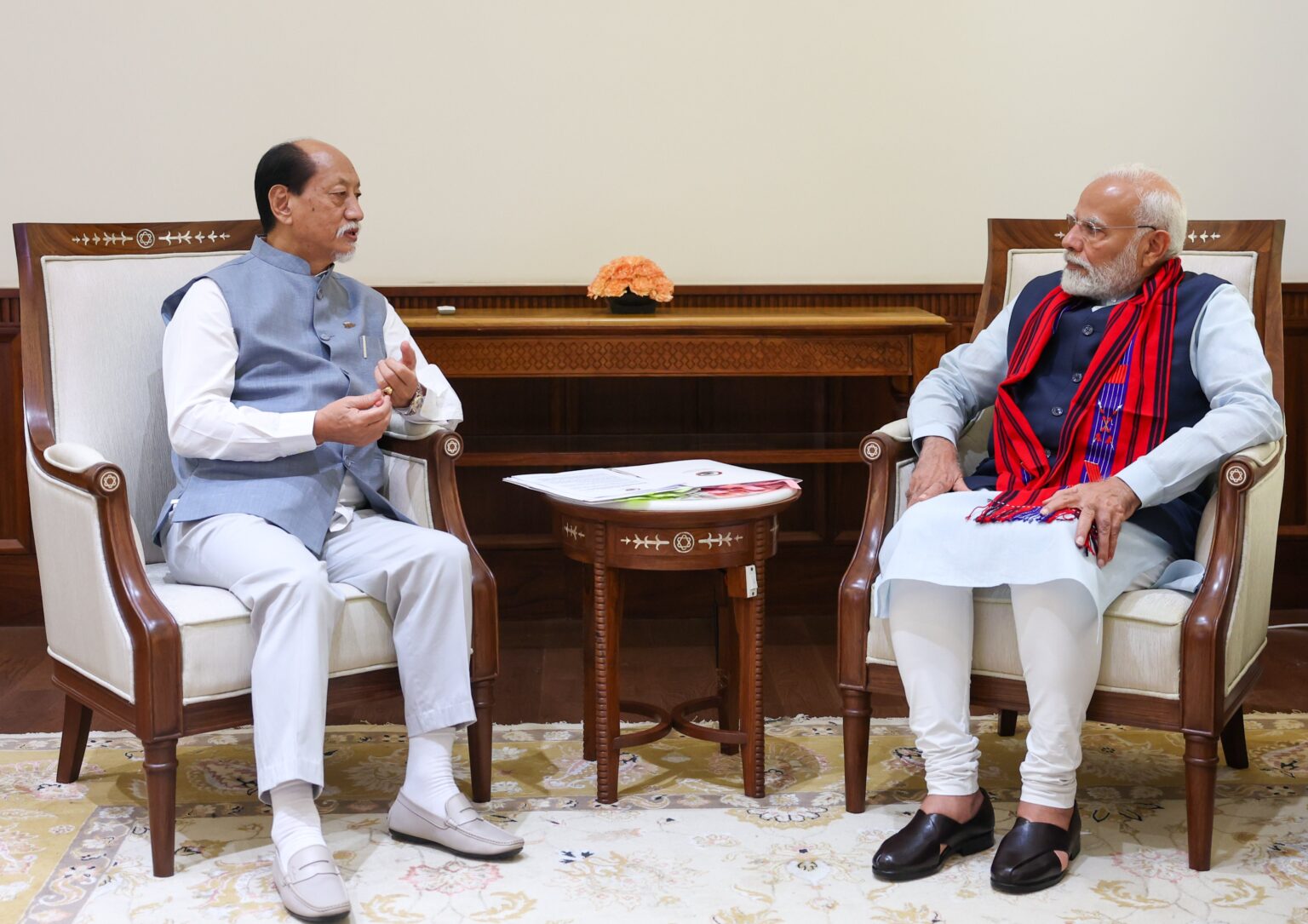 प्रधानमंत्री कार्यालय ने एक्स पर मुलाकात की तस्वीरें साझा करते हुए लिखा कि नगालैंड के मुख्यमंत्री नेफ्यू रियो ने प्रधानमंत्री से मुलाकात की।