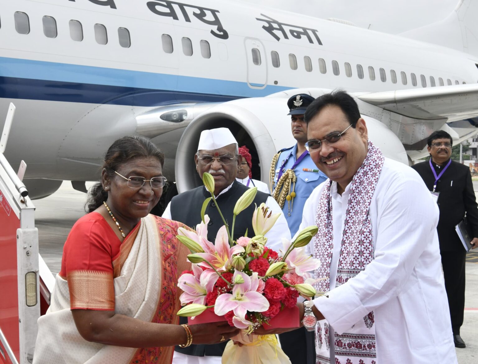 Share Facebook Twitter WhatsApp Telegram LinkedIn Pinterest Emailजयपुर। राष्ट्रपति द्रौपदी मुर्मू बुधवार सुबह जयपुर पहुंची। राज्यपाल हरीभाऊ बागडे और मुख्यमंत्री भजनलाल शर्मा ने राष्ट्रपति मुर्मु के जयपुर पहुंचने पर हवाईअड्डे पर पुष्पगुच्छ भेंट कर अगवानी की।