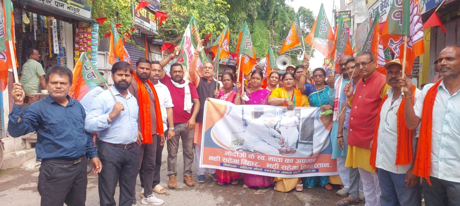 मौके पर फारबिसगंज विधायक विद्यासागर केशरी उर्फ मंचन केशरी ने कहा कि दरभंगा में राहुल गांधी और तेजस्वी प्रसाद के मंच पर से प्रधानमंत्री नरेन्द्र मोदी की मां को गाली दिया गया,जो बर्दाश्त से बाहर है।उन्होंने कहा कि प्रधानमंत्री के दिवंगत मां को गाली दिया जाना, विपक्षी दलों के चाल,चरित्र को दर्शाता है और यह गाली संपूर्ण मां के लिए गाली है,जिसके प्रतिकार स्वरूप भाजपा सहित एनडीए के घटक दलों के नेता सड़क पर उतरे हैं।