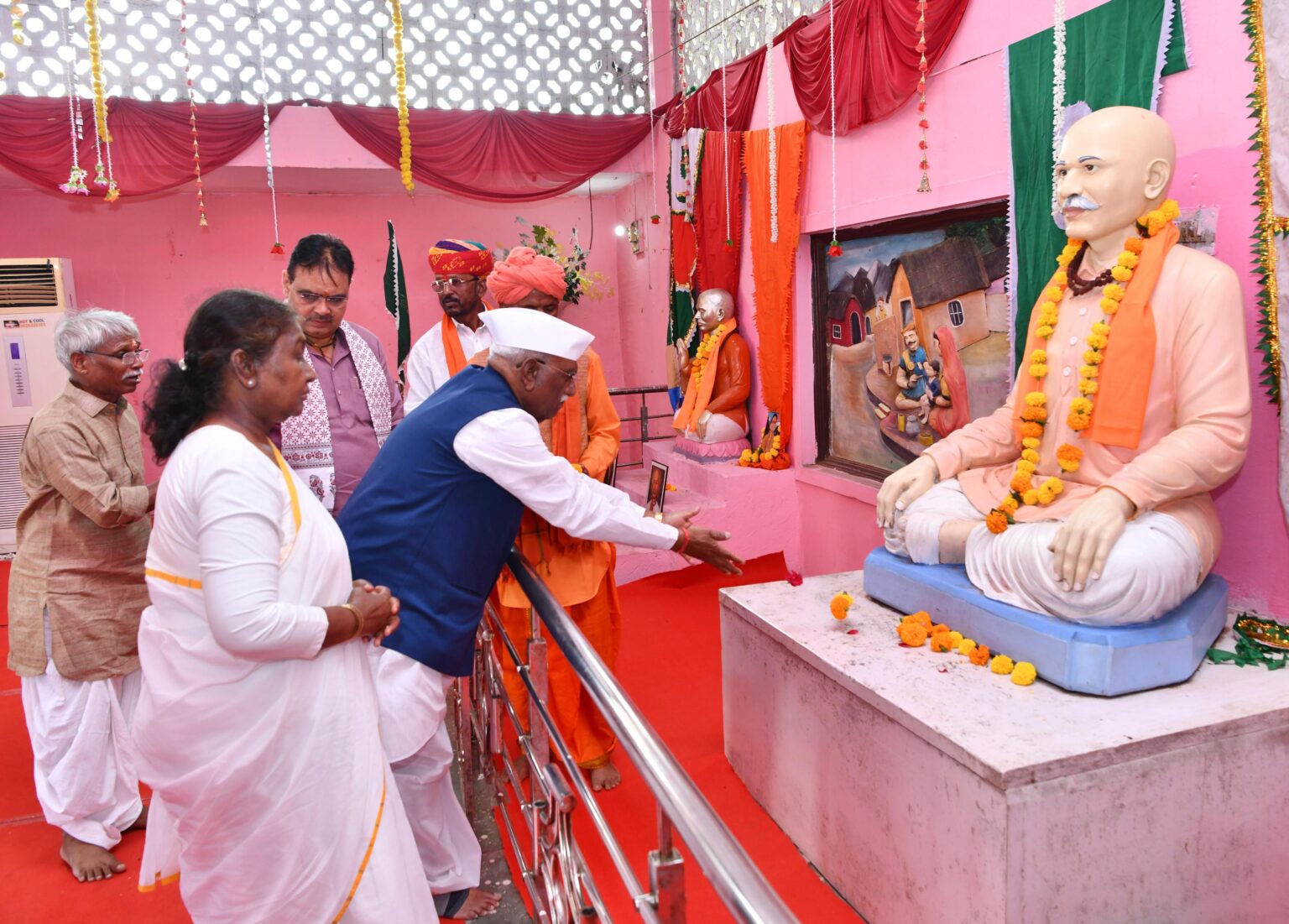 जयपुर/बांसवाड़ा। राष्ट्रपति द्रौपदी मुर्मु शुक्रवार को मानगढ़ धाम पहुंचीं। राष्ट्रपति मुर्मु ने राज्यपाल हरिभाऊ बागडे़ और मुख्यमंत्री भजनलाल शर्मा के साथ मानगढ़ धाम में गोविंद गुरु की समाधि पर श्रद्धांजलि अर्पित की। मानगढ़ धूनी दर्शन कर शहीदों को नमन किया।