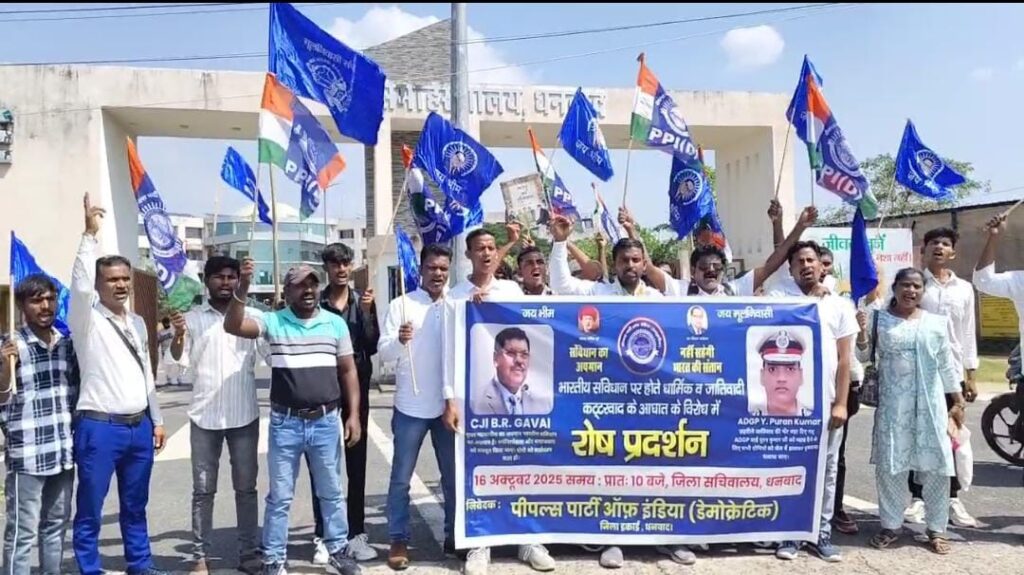 धनबाद। सुप्रीम कोर्ट में मुख्य न्यायाधीश (सीजेआई) बीआर गवई पर एक अधिवक्ता की ओर से सुनवाई के दौरान जूता फेंकने की कोशिश के विरोध में आक्रोश देखने को मिल रहा है। इस घटना के खिलाफ गुरुवार को शहर में बड़ी संख्या में लोगों ने रैली निकाल कर विरोध जताया।