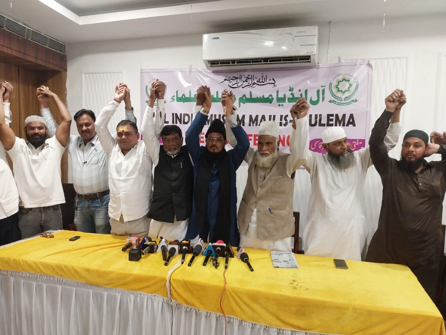 रांची। ऑल इंडिया मुस्लिम मजलिसे ए उलेमा के केंद्रीय अध्यक्ष मुफ्ती अब्दुल्लाह अजहर कासमी ने प्रेस कांफ्रेंस कर झारखंड के पांच अलग-अलग विधानसभा में उम्मीदवारों के समर्थन का ऐलान किया। इसमें रांची विधानसभा से एआइएमआइएम के उम्मीदवार महताब आलम, बड़कागांव से मो शमीम, एआइएमआइएम, संतोष रजक कांके सीपीआई, लाल किशन नाथ सिमरिया, जयराम महतो डुमरी और बेरमो विधानसभा से ऑल इंडिया मुस्लिम मजलिसे उलेमा ने समर्थन का ऐलान किया। इस मौके पर बोलते हुए केंद्रीय अध्यक्ष मुफ्ती अब्दुल्लाह अजहर काजमी ने कहा लोकतंत्र को मजबूत करने के लिए इन पांच उम्मीदवारों को वोट दे। झारखंड के चार करोड़ जनता के नाम उन्होंने ऐलान किया। उन्होंने कहा कि लोकसभा चुनाव के समय कांग्रेस प्रभारी गुलाम अहमद मीर ने कहा था कि लोकसभा में आप हमारा साथ दे हम विधानसभा चुनाव में छह अल्पसंख्यक उम्मीदवारों को विधानसभा में सीट देंगे। जबकि उन्होंने सिर्फ दो वर्तमान विधायकों को ही ही सीट दिया। यह मुसलमान की लीडरशिप को गौण करने की कांग्रेस की एक गहरी साजिश है। सभी पार्टियों मुसलमान को राजनीति में खत्म करना चाहती है। इस मौके पर राष्ट्रीय संरक्षक तौफ़ीक़ कादरी, आलोक सिंह ठाकुर, इम्तियाज़ आलम और बच्चा बाबू समेत कई लोग मौजूद थे।