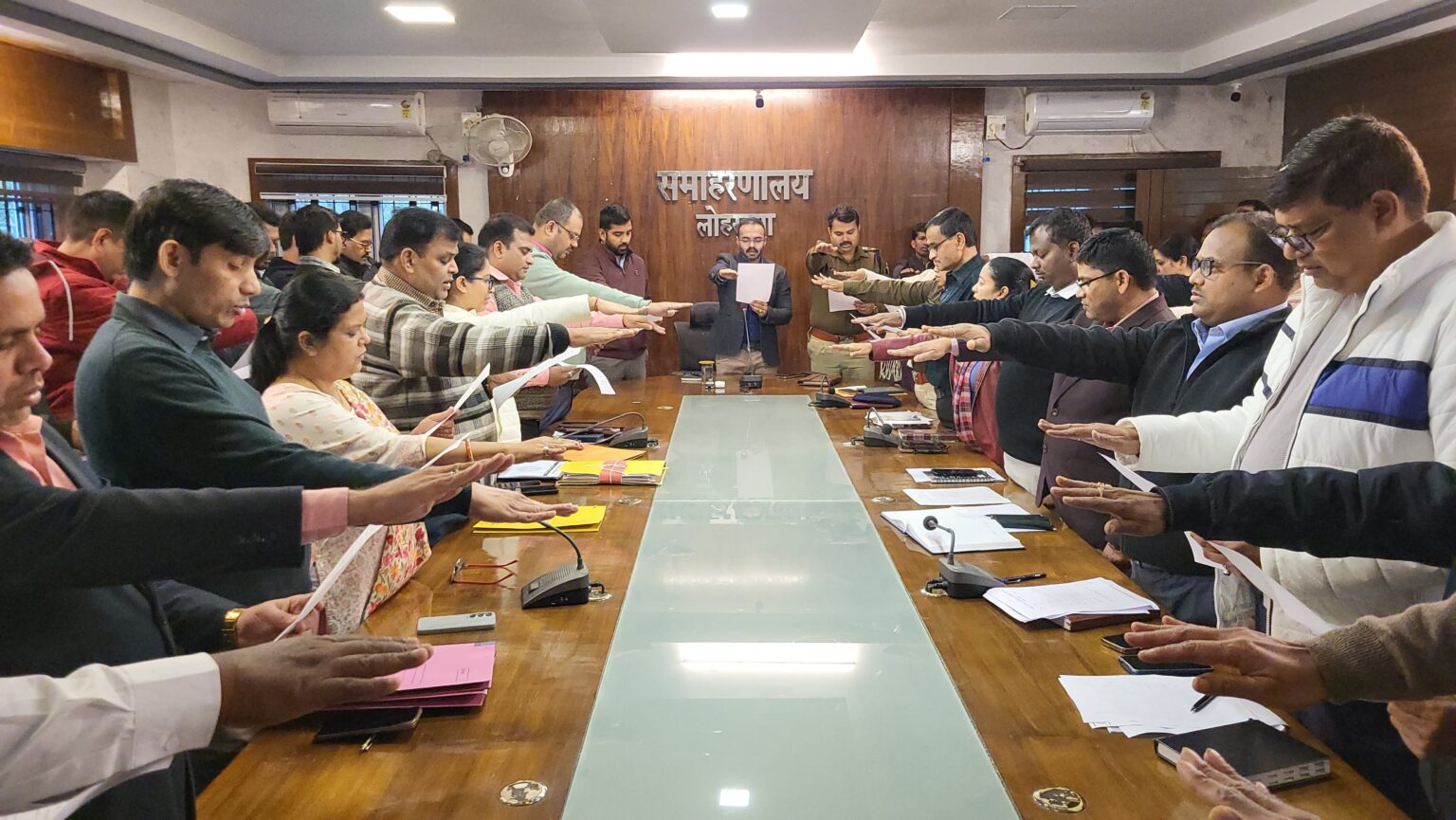 लोहरदगा। भारतीय संविधान दिवस पर उपायुक्त डॉ वाघमारे प्रसाद कृष्ण ने मंगलवार को समाहरणालय सभाकक्ष में सभी पदाधिकारियों व कर्मियों को देश को संपूर्ण प्रभुत्व-संपन्न समाजवादी, पंथ निरपेक्ष, लोकतंत्रात्मक गणराज्य बनाने के लिए तथा देश के समस्त नागरिकों को सामाजिक, आर्थिक और राजनैतिक न्याय, विचार, अभिव्यक्ति, विश्वास, धर्म और उपासना की स्वतंत्रता, प्रतिष्ठा और अवसर की समता प्राप्त कराने के लिए तथा उन सब में व्यक्ति की गरिमा और राष्ट्र की एकता और अखंडता सुनिश्चित करनेवाली बंधुता बढ़ाने के लिए दृढ़संकल्प होकर संविधान को अंगीकृत, अधिनियमित और आत्मार्पित करने की शपथ दिलायी गई। यह शपथ कार्यक्रम जिला और प्रखंड के अन्य कार्यालयों में भी आयोजित किया गया।