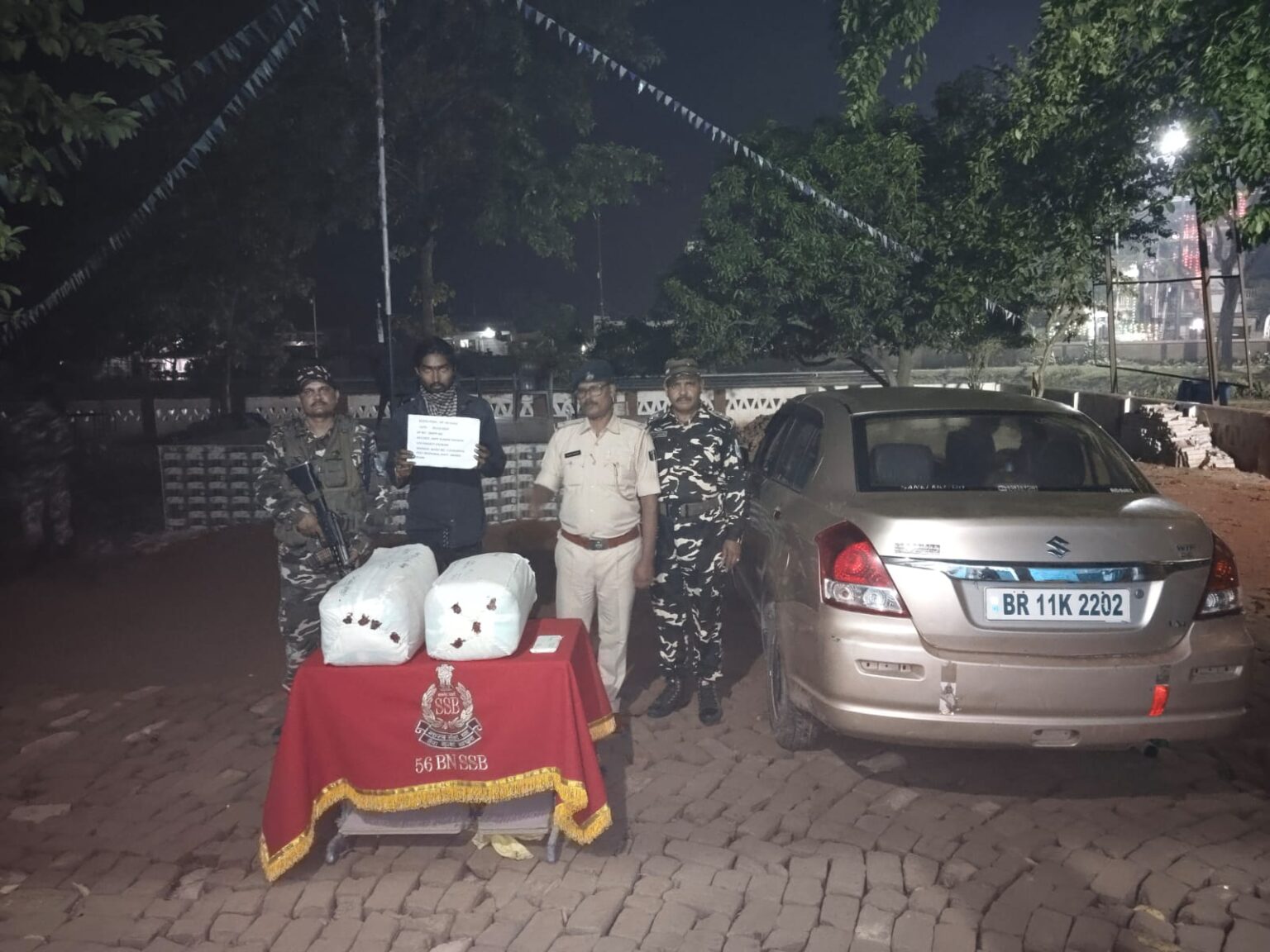 गिरफ्तार गांजा तस्कर नेपाल से स्विफ्ट डिजायर कार संख्या बीआर11के-2202 में डिक्की के नीचे अलग से तहखाना बनाकर गांजा के पैकेट को छिपा कर रखा था।एसएसबी और जोगबनी थाना पुलिस ने संयुक्त रूप से यह कार्रवाई गुप्त सूचना के आधार पर की।
