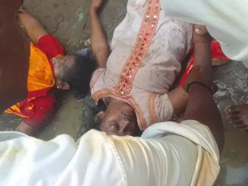 श्रीकाकुलम। आंध्र प्रदेश के श्रीकाकुलम स्थित काशीबुग्गा वेंकटेश्वर स्वामी मंदिर में शनिवार को एकादशी के दौरान भगदड़ मचने से 10 लोगों की मौत हो गयी। इनमें आठ महिलाएं और दो बच्चे हैं। 25 से ज्यादा लोगों का इलाज चल रहा है। मृतकों की संख्या बढ़ सकती है। स्थानीय लोगों के अनुसार मंदिर पहली मंजिल पर है, जिसका आने-जाने का रास्ता एक ही है। शनिवार को एकादशी के मौके पर भारी भीड़ के दौरान रास्ता जाम हो गया। लोगों की धक्का-मुक्की की वजह से रेलिंग टूट गयी। इससे भगदड़ मच गयी।