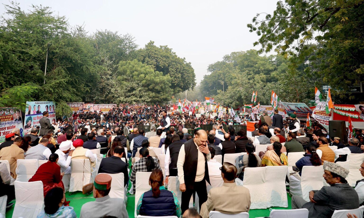 Share Facebook Twitter WhatsApp Telegram LinkedIn Pinterest Emailनई दिल्ली। इन्डिया गठबंधन के 146 सांसदों के निलंबन के खिलाफ इन्डिया गठबंधन का जंतर-मंतर पर विरोध प्रदर्शन राहुल गांधी और कांग्रेस अध्यक्ष मल्लिकार्जुन खड़गे, सीताराम येचुरी, शरद पवार व अन्या नेतागण।