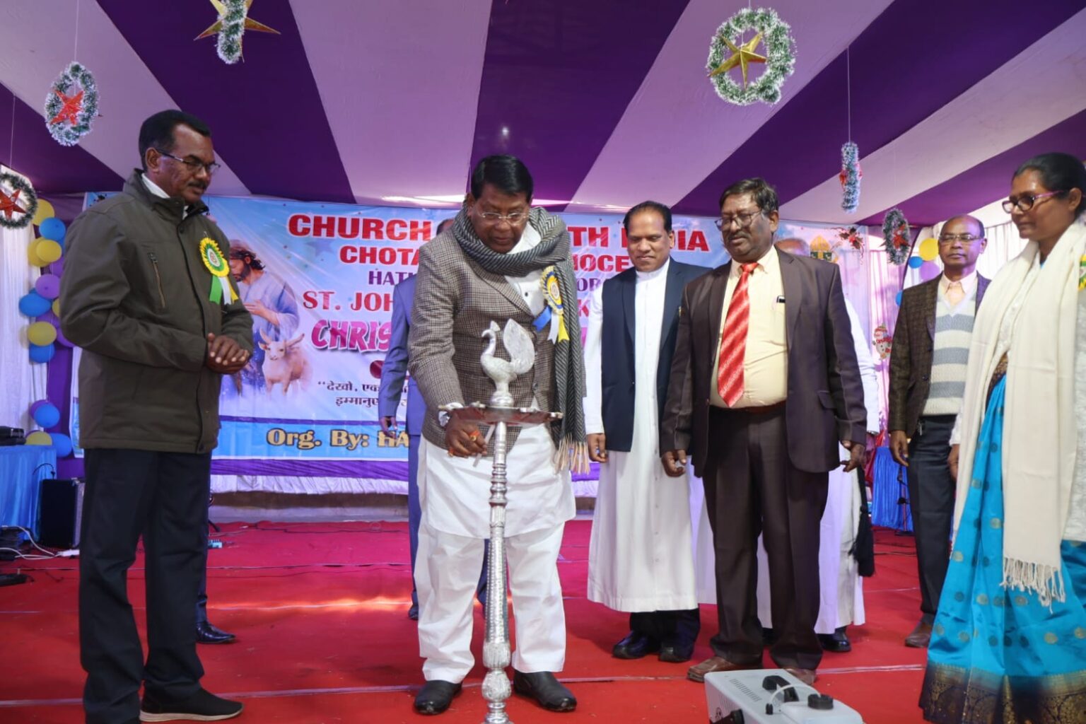 रांची। संत जॉन्स चर्च कल्याणपुर हटिया में क्रिसमस गैदरिंग का आयोजन रविवार को किया गया। इसमें मुख्य अतिथि वित्त मंत्री डॉ रामेश्वर उरांव ने कहा कि प्रभु ईसा मसीह का पवित्र संदेश सत्य, प्रेम और करुणा के मार्ग पर चलकर समाज में समरसता और सद्भावना की मिसाल कायम हो सकती है। डॉ उरांव ने कहा प्रभु यीशु का संदेश ख्रीस्त साहब के द्वारा सुनने का अवसर मिला। कहा कि हम अपने आप से जैसा प्रेम करते हैं, अगर वैसा ही प्रेम पड़ोसियों से भी करें, तो मुहल्ला खूबसूरत हो जायेगा। प्रभु ईसा मसीह के बताये मार्ग पर अगर हम चलें, तो रूस और यूक्रेन के बीच युद्ध नहीं होगा। डॉ उरांव ने कहा कि शिक्षा के क्षेत्र में झारखंड में मसीही समुदाय द्वारा स्कूल खोले गये। जंगल और पहाड़ में रहने वाले लोगों के बीच में न सिर्फ शिक्षा का प्रचार-प्रचार किया, बल्कि उन्हें शिक्षित कर मुख्य धारा में शामिल होने का अवसर प्रदान किया।