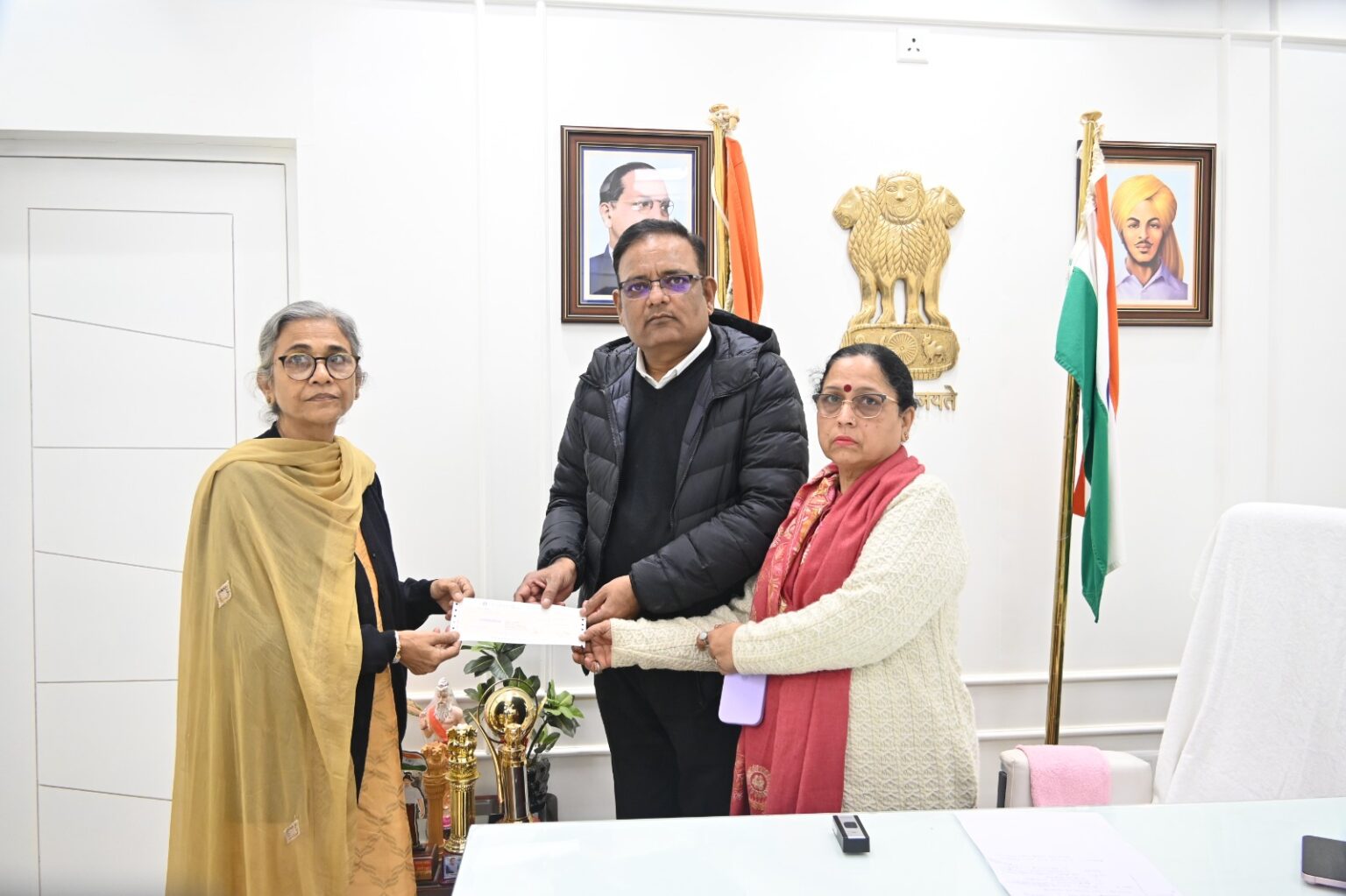 नई दिल्ली। दिल्ली सरकार के समाज कल्याण मंत्री राज कुमार आनंद ने शनिवार को कोविड-19 की ड्यूटी के दौरान कोरोना की चपेट में आकर अपनी जान गंवाने वाले कोरोना योद्धा डॉ. अनिल वहल के परिजनों से मुलाकात की और उन्हें दिल्ली सरकार की तरफ से एक करोड़ रुपये की सम्मान राशि का चेक सौंपा।