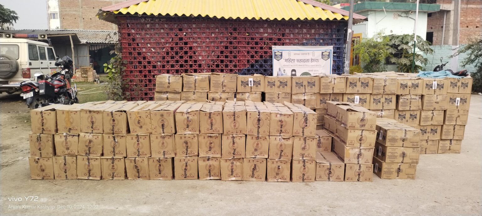 नवगछिया एसपी के निर्देशन में अवैध शराब के विरूद्ध लगातार चलायी जा रहे अभियान के क्रम में कदवा थाना को गुप्त सूचना मिली कि एक लग्जरी बस में काफी मात्रा में विदेशी शराब लाया जा रहा है। उक्त सूचना पर त्वरित कार्रवाई करते हुए थानाध्यक्ष कदवा के नेतृत्व में एसएच-58 नवगछिया-चौसा मुख्य सड़क पर सघन वाहन जॉच प्रारंभ किया गया। उसी क्रम में नवगछिया जीरो माईल की ओर से आती हुई बस रजि० नं०-बीआर 01पीसी 9974 को रोककर तलाशी लेने पर उक्त बस से कुल-204 पेटी में बंद 375 एम०एल० का 4488 बोतल एवं 180 एम०एल० का 816 बोतल कुल मात्रा 1829.88 लीटर विदेशी शराब बरामद किया गया। साथ ही नरेश राम और अंकित कुमार को गिरफ्तार किया गया।