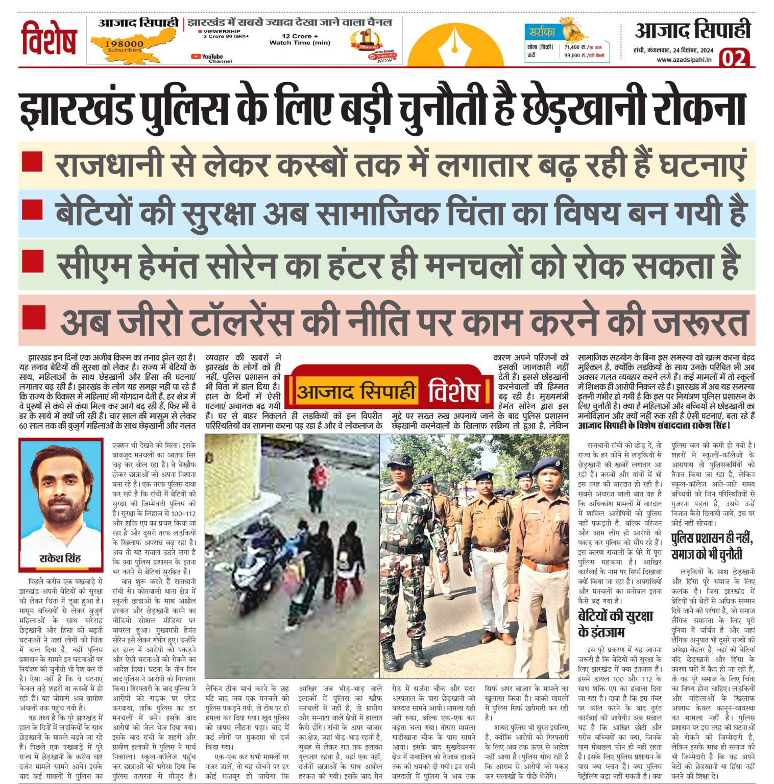 मुख्यमंत्री हेमंत सोरेन द्वारा इस मुद्दे पर सख्त रुख अपनाये जाने के बाद पुलिस प्रशासन छेड़खानी करनेवालों के खिलाफ सक्रिय तो हुआ है, लेकिन सामाजिक सहयोग के बिना इस समस्या को ख्रत्म करना बेहद मुश्किल है, क्योंकि लड़कियों के साथ उनके परिचित भी अब अक्सर गलत व्यवहार करने लगे हैं। कई मामलों में तो स्कूलों में शिक्षक ही आरोपी निकल रहे हैं। झारखंड में अब यह समस्या इतनी गंभीर हो गयी है कि इस पर नियंत्रण पुलिस प्रशासन के लिए चुनौती है। क्या है महिलाओं और बच्चियों से छोड़खानी का मनोविज्ञान और क्यों नहीं रुक रही हैं ऐसी घटनाएं, बता रहे हैं आजाद सिपाही के विशेष संवाददाता राकेश सिंह।