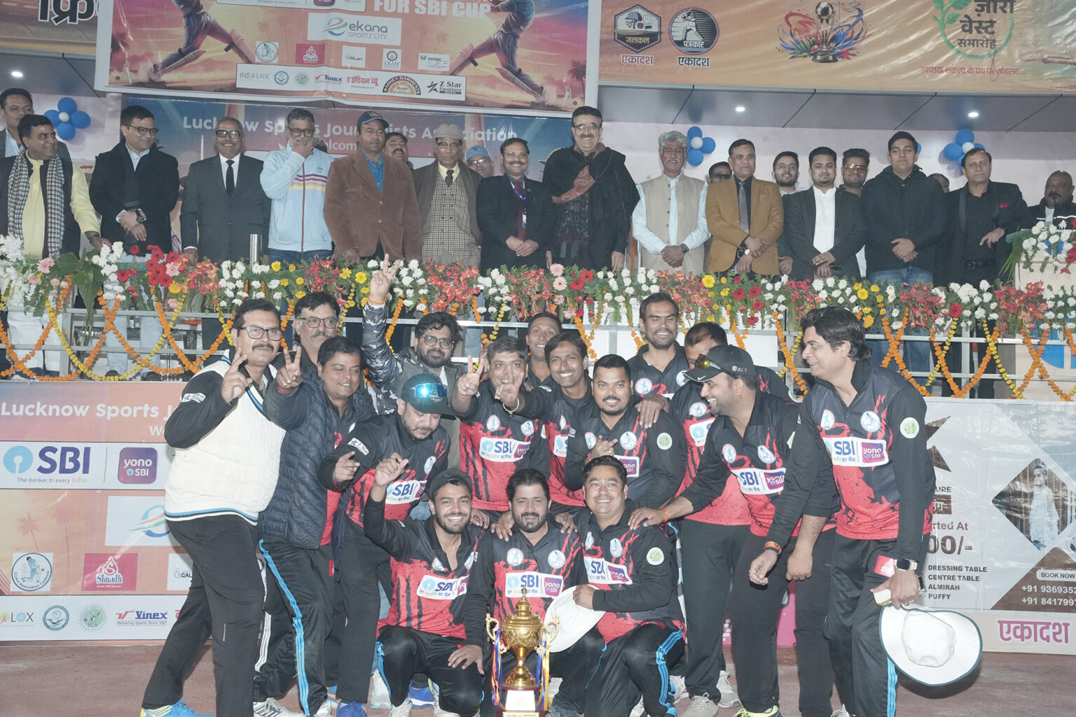 लखनऊ । मैन ऑफ द मैच मयूर शुक्ला (93 रन, 4 विकेट ) के दमदार आलराउंड खेल की सहायता से इलेक्ट्राॅनिक मीडिया एकादश ने एसबीआई कप मीडिया प्रीमियर लीग 2024-25 में खिताबी जीत दर्ज की। लखनऊ स्पोर्ट्स जर्नलिस्ट एसोसिएशन (एलएसजेए) के तत्वावधान में केडी सिंह बाबू स्टेडियम में खेले गए मुकाबले में इलेक्ट्राॅनिक मीडिया ने टाइम्स ऑफ इंडिया को 63 रन से हराकर ट्रॉफी पर कब्जा बरकरार रखा।