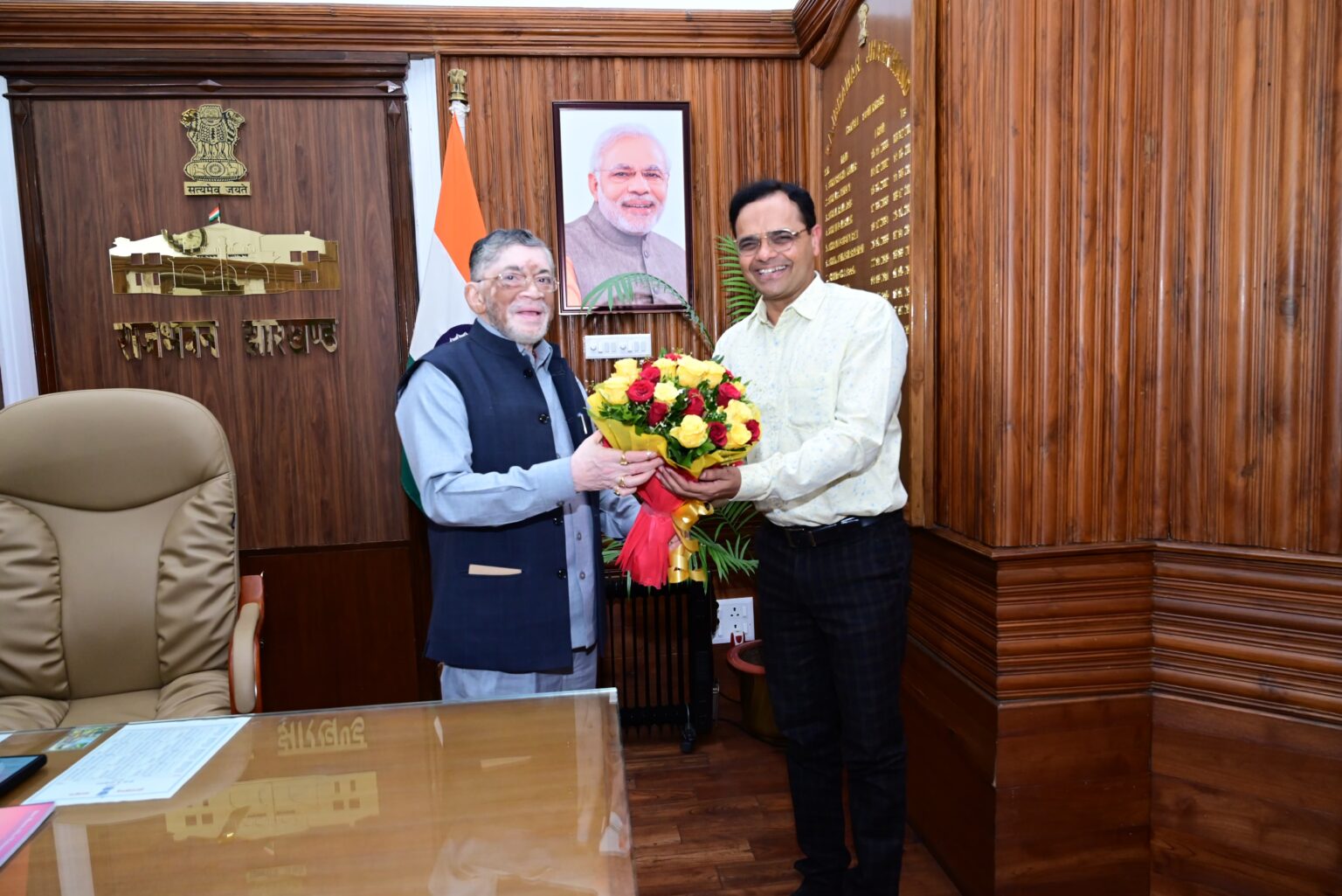 रांची। राज्यपाल के प्रधान सचिव नितिन मदन कुलकर्णी ने गुरुवार को राजभवन में राज्यपाल संतोष कुमार गंगवार से मुलाकात की। राज्यपाल ने नितिन कुलकर्णी को राज्य के अपर मुख्य सचिव के पद पर पदोन्नति होने पर बधाई एवं शुभकामनाएं दीं। साथ ही कहा कि नितिन मदन कुलकर्णी के प्रशासनिक अनुभव और कार्यकुशलता का लाभ राज्यवासियों को अवश्य मिलेगा।