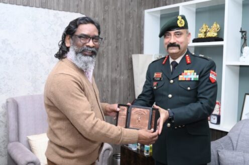 रांची। मुख्यमंत्री हेमन्त सोरेन से गुरुवार को मुख्यमंत्री आवासीय कार्यालय में लेफ्टिनेंट जनरल वाईएस अहलावत, एवीएसएम, वाईएसएम, एसएम, जीओसी- 17 कोर और मेजर जनरल परमवीर सिंह डागर, वीएसएम और जीओसी-23 इन्फैंट्री डिवीजन ने मुलाकात की। मुख्यमंत्री के साथ उनकी यह शिष्टाचार भेंट थी।