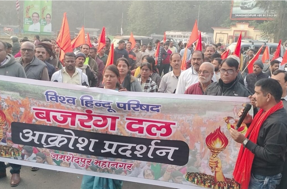 पूर्वी सिंहभूम। बांग्लादेश में हिंदू युवक दिपूचंद्र दास की जिंदा जला कर हत्या के विरोध में बुधवार को जमशेदपुर में जनाक्रोश देखने को मिला। विश्व हिंदू परिषद (विहिप) और बजरंग दल के आह्वान पर बड़ी संख्या में लोग सड़कों पर उतरे और बांग्लादेश में हिंदुओं पर हो रहे अत्याचार के खिलाफ आक्रोश मार्च निकाला।