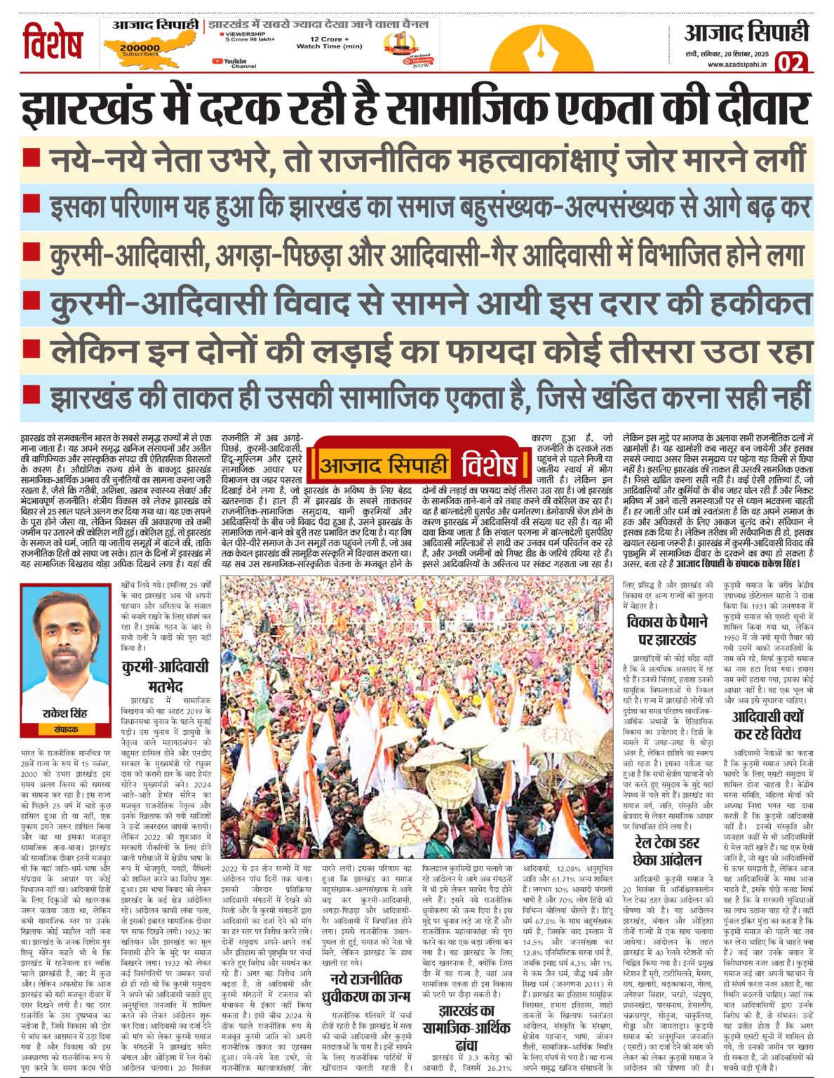 विशेष -नये-नये नेता उभरे, तो राजनीतिक महत्वाकांक्षाएं जोर मारने लगीं -इसका परिणाम यह हुआ कि झारखंड का समाज बहुसंख्यक-अल्पसंख्यक से आगे बढ़ कर -कुरमी-आदिवासी, अगड़ा-पिछड़ा और आदिवासी-गैर आदिवासी में विभाजित होने लगा -कुरमी-आदिवासी विवाद से सामने आयी इस दरार की हकीकत -लेकिन इन दोनों की लड़ाई का फायदा कोई तीसरा उठा रहा -झारखंड की ताकत ही उसकी सामाजिक एकता है, जिसे खंडित करना सही नहीं झारखंड को समकालीन भारत के सबसे समृद्ध राज्यों में से एक माना जाता है। यह अपने समृद्ध खनिज संसाधनों और अतीत की वाणिज्यिक और सांस्कृतिक संपदा की ऐतिहासिक विरासतों के कारण है। औद्योगिक राज्य होने…