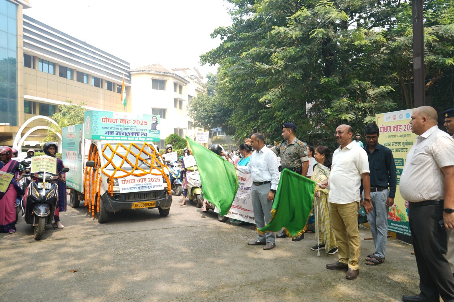 पूर्वी सिंहभूम। जिला में 8वां राष्ट्रीय पोषण माह के अवसर पर शुक्रवार को समाहरणालय परिसर से उपायुक्त कर्ण सत्यार्थी ने पोषण जागरूकता रथ को हरी झंडी दिखाकर रवाना किया। इस अवसर पर अपर उपायुक्त भगीरथ प्रसाद, डीटीओ धनंजय, जिला समाज कल्याण पदाधिकारी संध्या रानी, सीडीपीओ और महिला पर्यवेक्षिका भी मौजूद रहीं। पोषण रथ जिले के धालभूम और घाटशिला अनुमंडल के शहरी क्षेत्रों के अलावा ग्रामीण इलाकों के टोला-मोहल्ला और हाट-बाजारों में भ्रमण कर लोगों को कुपोषण से बचाव और पौष्टिक आहार के महत्व के प्रति जागरूक करेगा। कार्यक्रम के दौरान उपायुक्त ने उपस्थित प्रतिभागियों को पोषण शपथ भी दिलाई। उन्होंने…