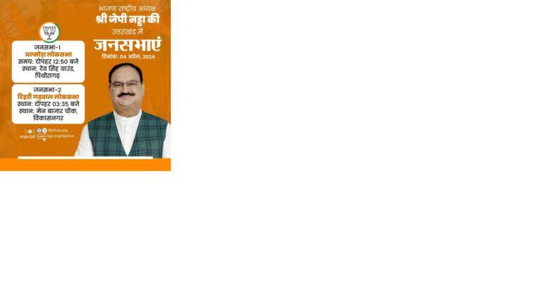 नई दिल्ली। भारतीय जनता पार्टी (भाजपा) अध्यक्ष जेपी नड्डा आज (गुरुवार) को उत्तराखंड में दो स्थानों पर पार्टी की चुनाव…