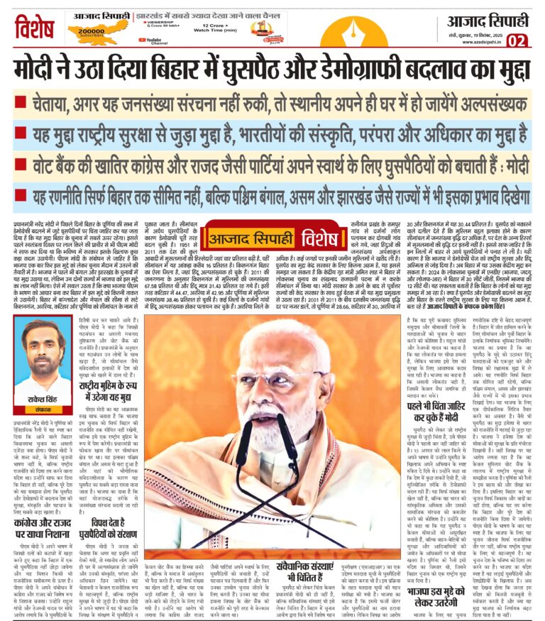 विशेष चेताया अगर यह जनसंख्या संरचना नहीं रुकी, तो स्थानीय अपने ही घर में हो जायेंगे अल्पसंख्यक यह मुद्दा राष्ट्रीय…