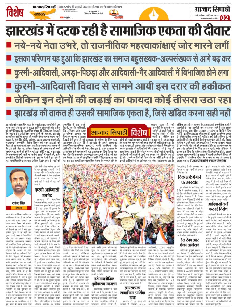विशेष -नये-नये नेता उभरे, तो राजनीतिक महत्वाकांक्षाएं जोर मारने लगीं -इसका परिणाम यह हुआ कि झारखंड का समाज बहुसंख्यक-अल्पसंख्यक से…